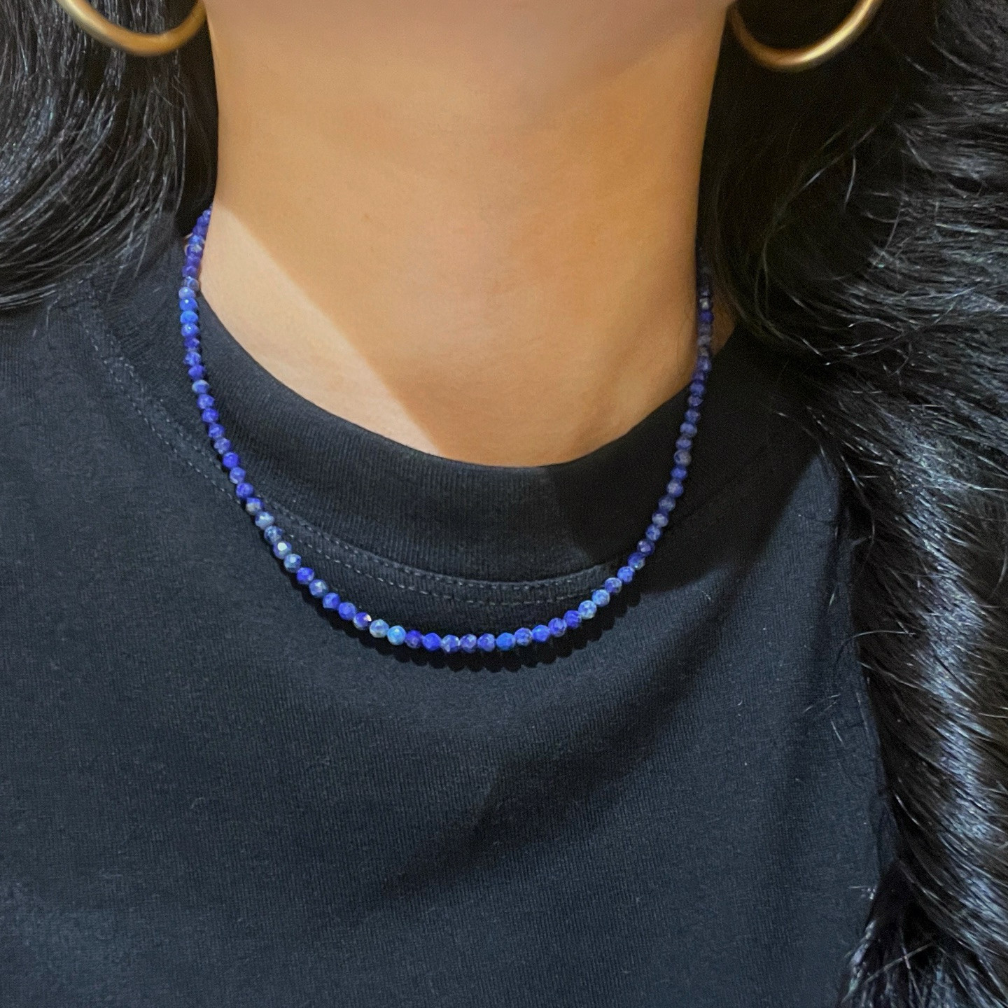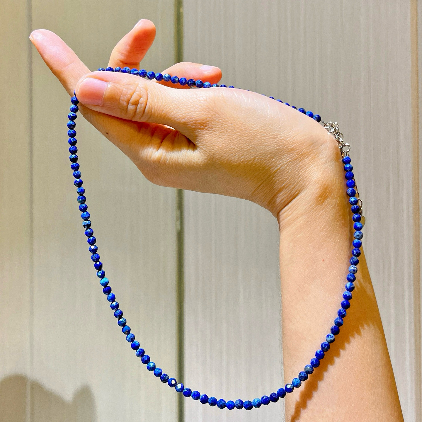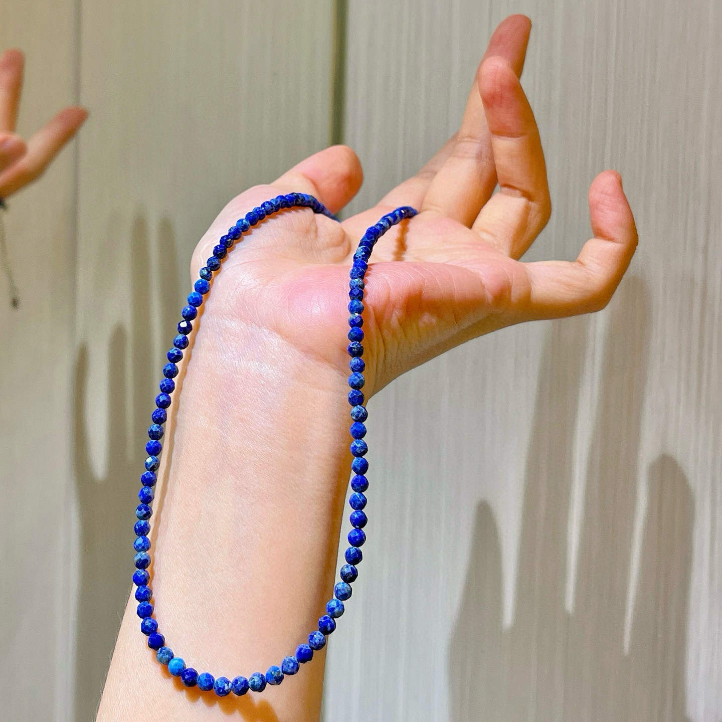 新中式复古4mmbaby珠天然青花瓷青金石项链复古蓝串珠高级锁骨链