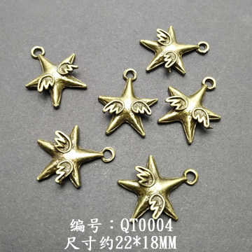 复古青铜五角星六芒星魔法阵天使吊坠DIY配件手工串珠材料10个/包