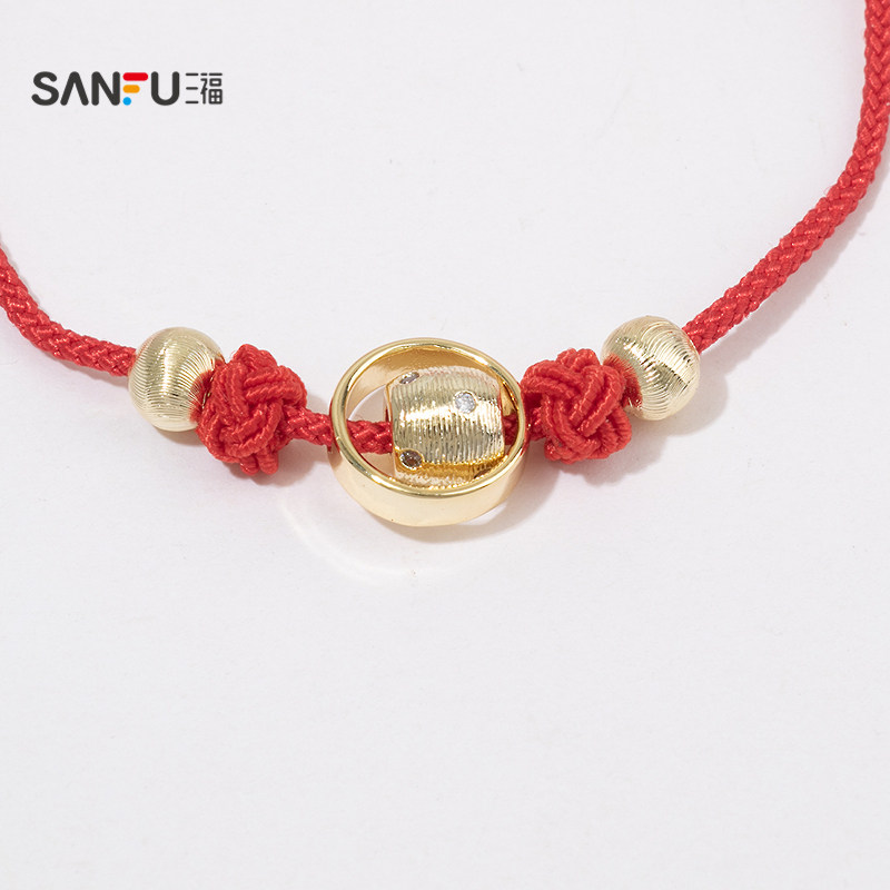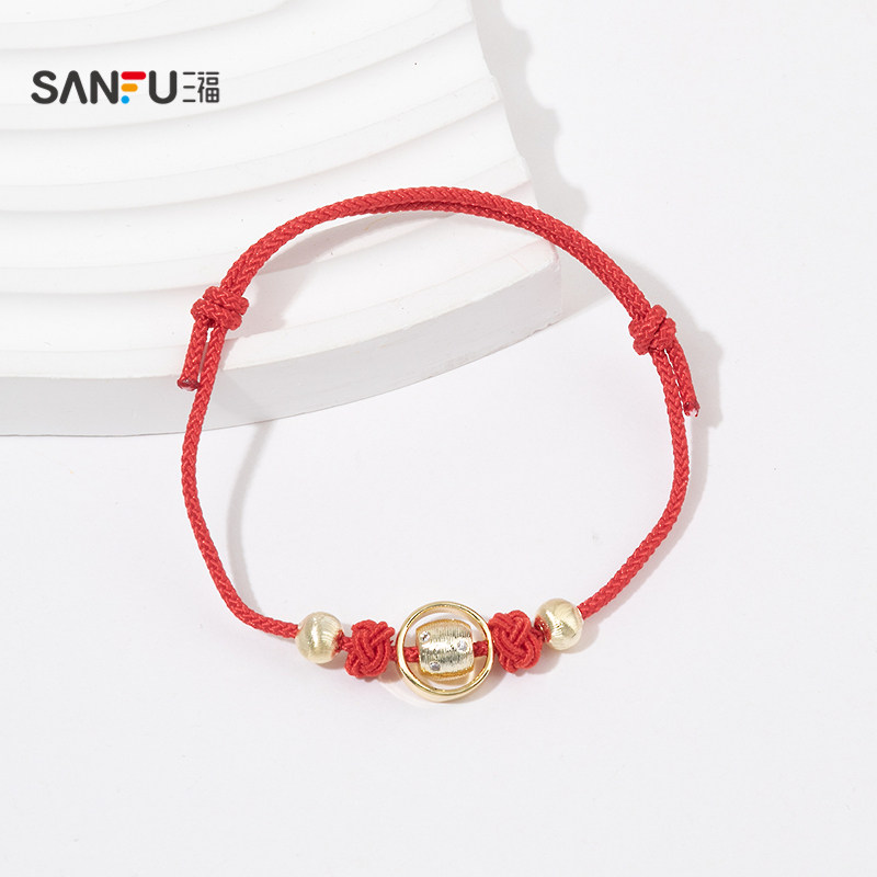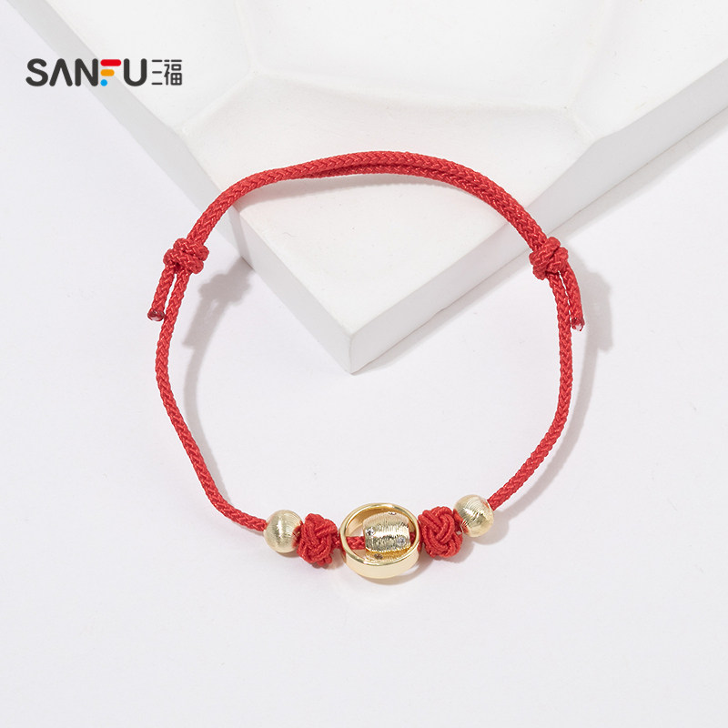 三福中式红绳简约手链单条 国潮气质首饰手饰配饰手绳847716