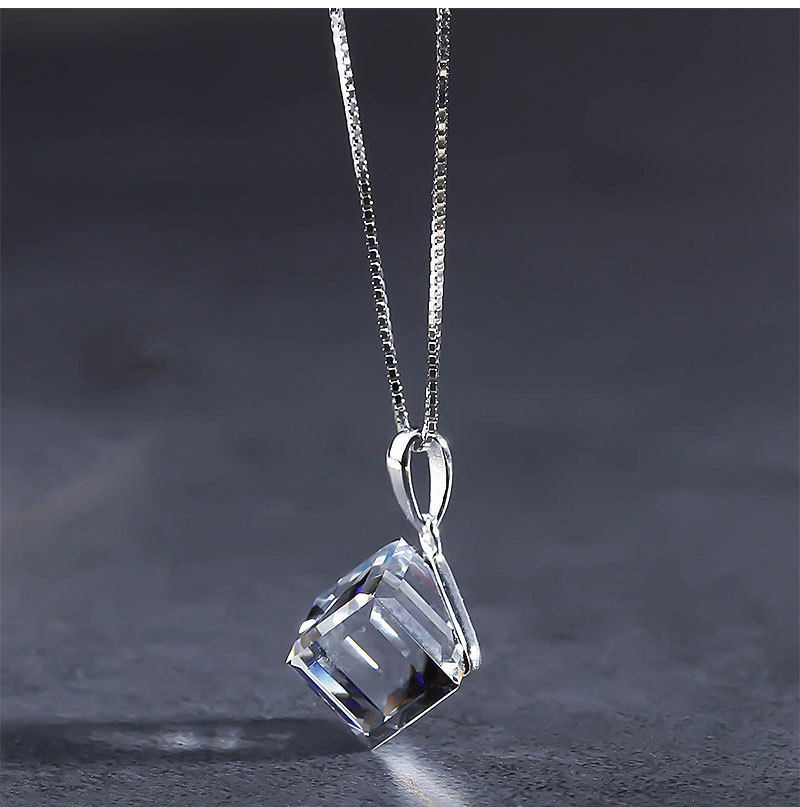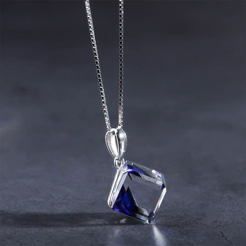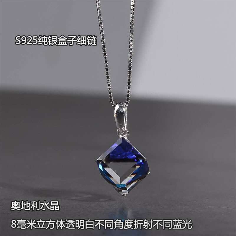 通体S925纯银项链奥地利水晶蓝色极光方糖变色吊坠锁骨链超闪通透