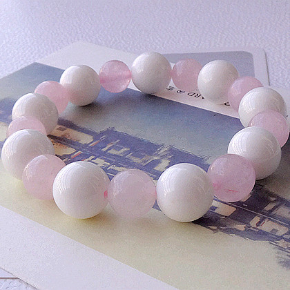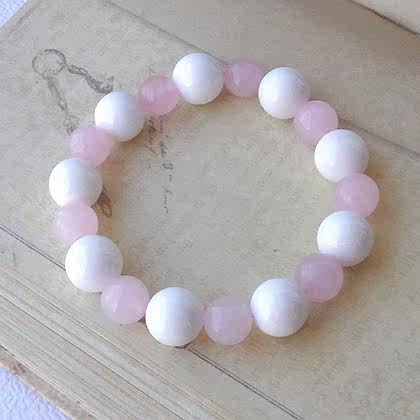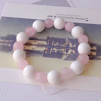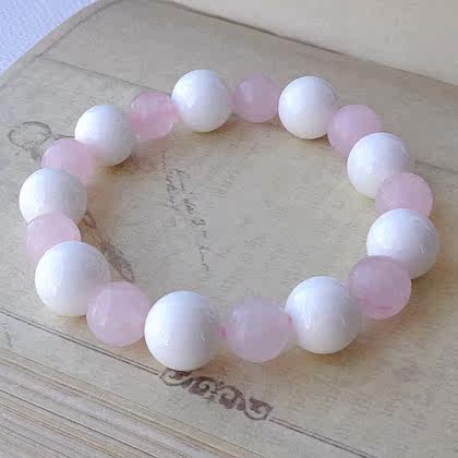 【雪纱】包邮 天然水晶手链女 白色珠 粉晶 手串 招桃花