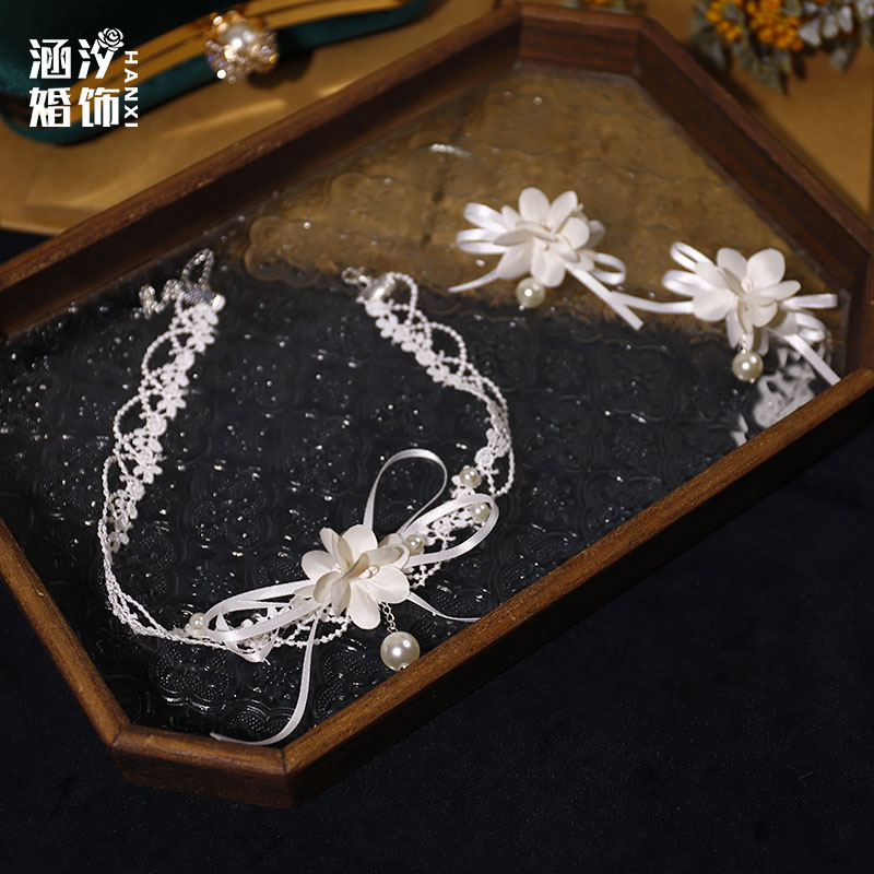 法式复古花朵蝴蝶结蕾丝颈链甜美造型项链耳环套新娘婚纱礼服配饰