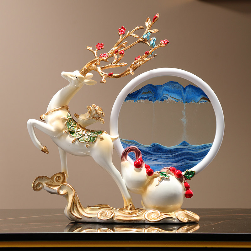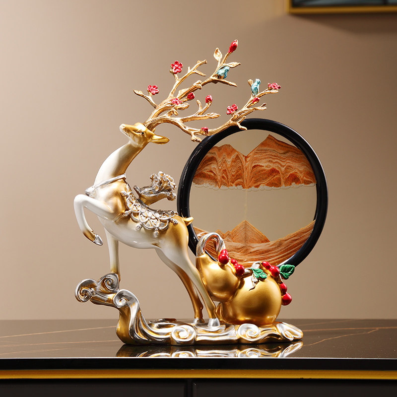 新中式五福临门流沙画摆件创意沙漏桌面摆件客厅装饰乔迁家居礼品
