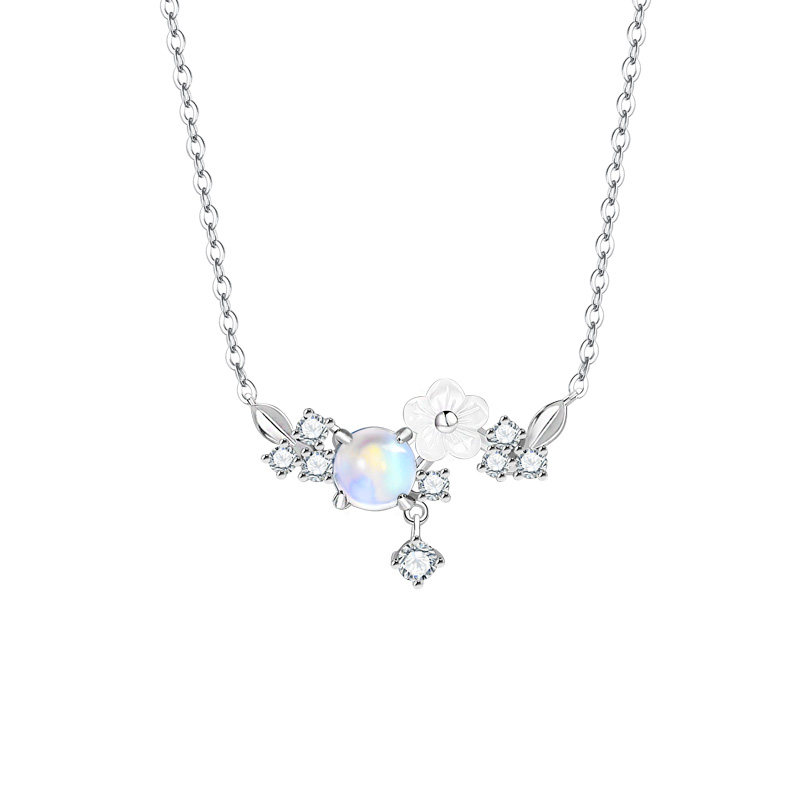 花未央月光石项链女生纯银锁骨链轻奢小众高级感2026新款生日礼物