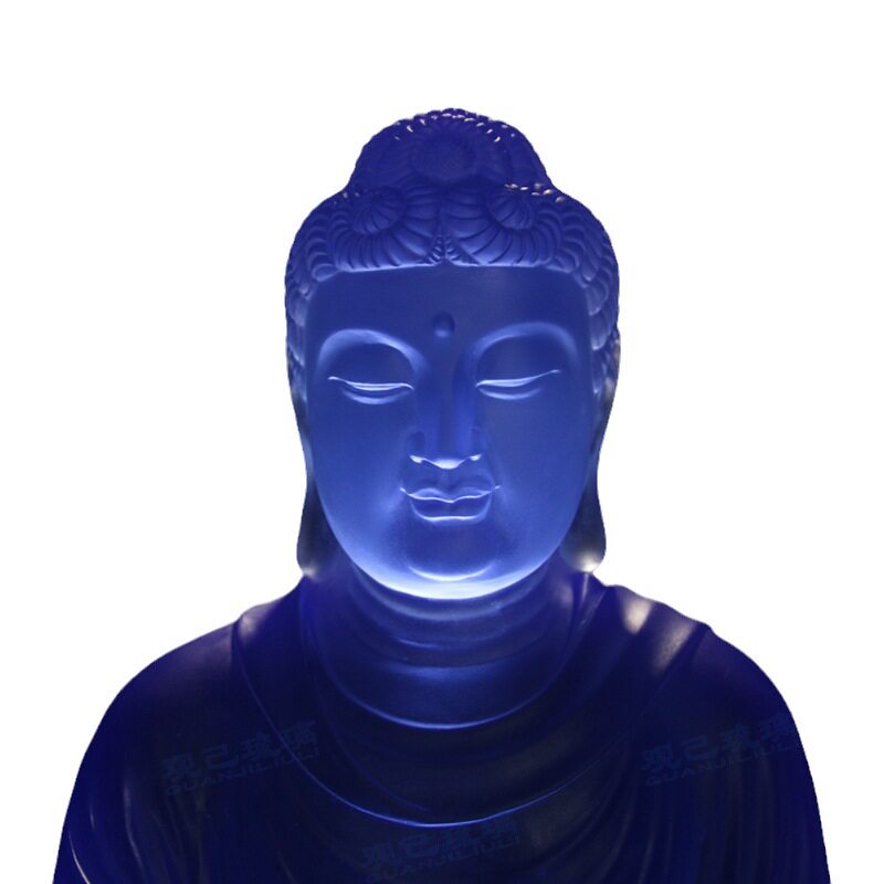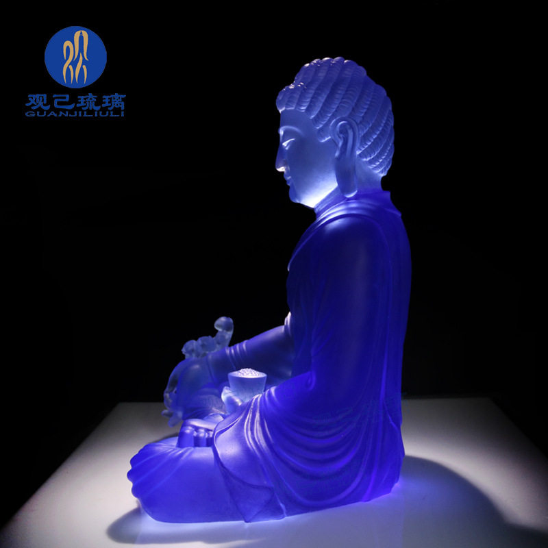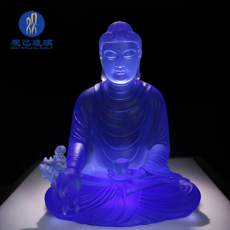 琉璃药师佛摆件居家供奉客厅家用佛具镇宅莲花底座琉璃光如来佛像