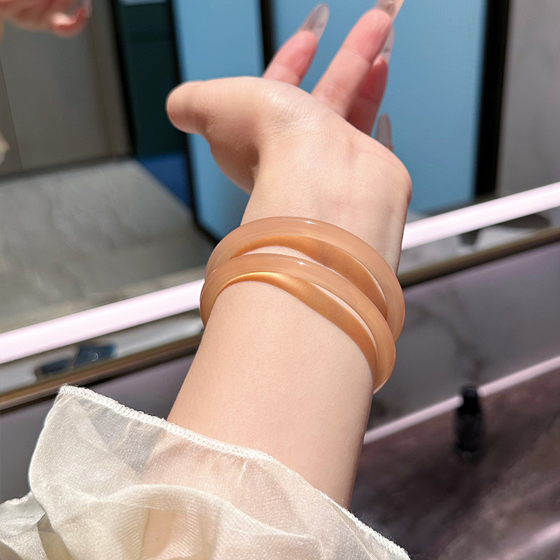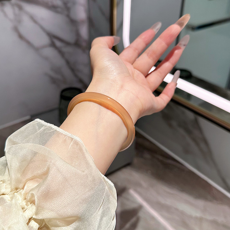 叮当镯天然黄高冰玛瑙手镯冰种镯子女翡翠玉髓黄色玉镯美人条细条