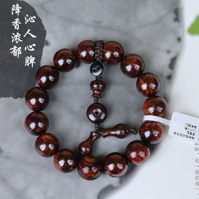 正宗海南黄花梨霸王岭帝王紫油梨老料佛珠手串15mm满鬼脸对眼1.5