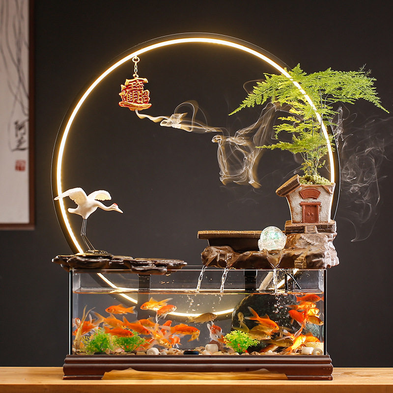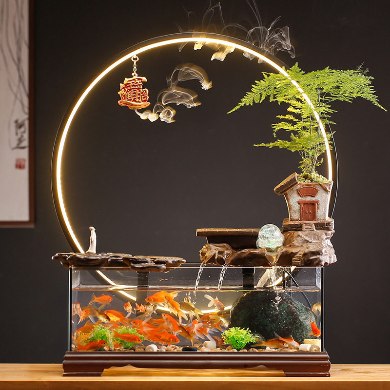 鱼缸流水摆件循环水喷泉景观家居客厅办公室桌面装饰乔迁开业礼品