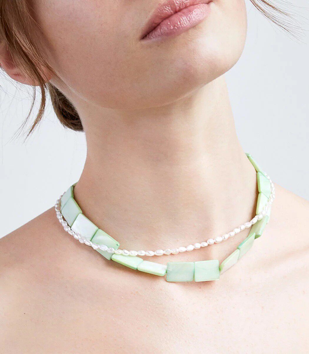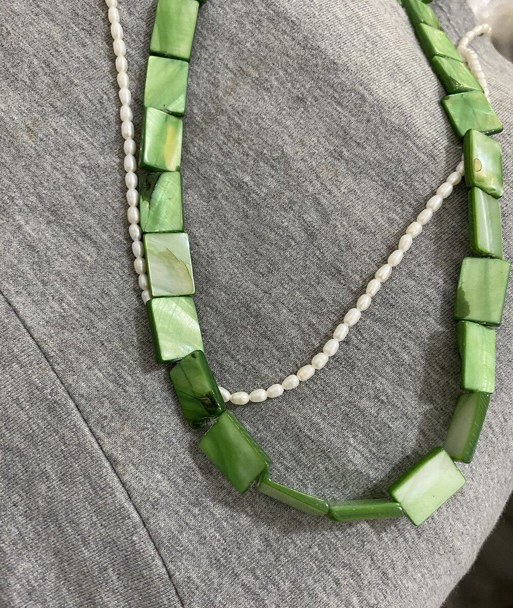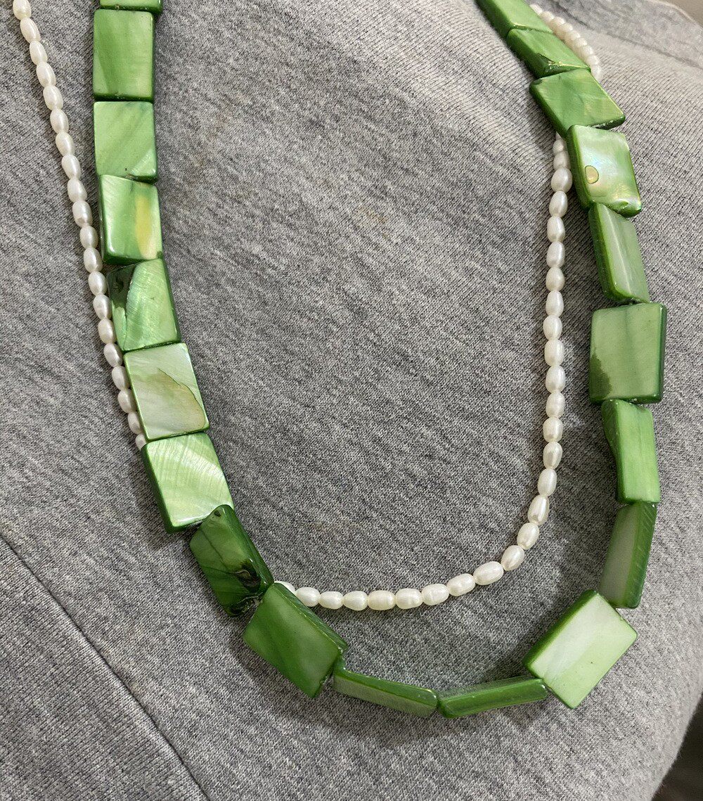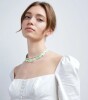 欧美夏日马卡龙青绿色方片拼接甜美天然淡水珍珠项链 清新锁骨链