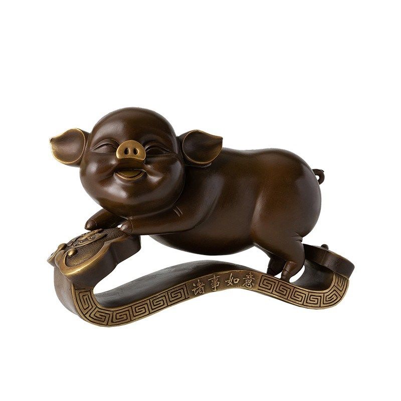 古铜官 猪事如意生肖猪黑色客厅铜工艺品桌面摆件家居电视柜礼品