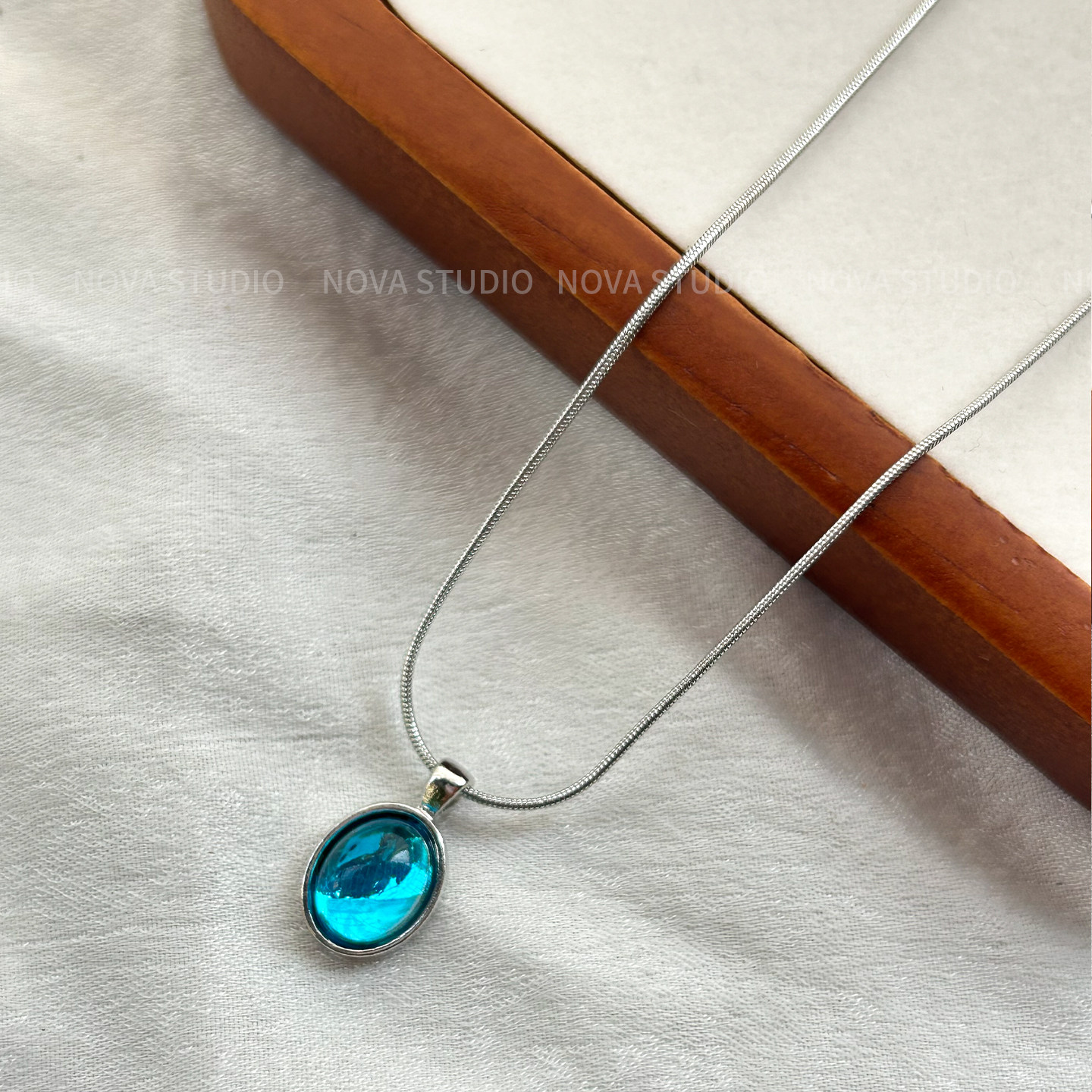 小众设计项链女银色椭圆吊坠锁骨链高级感百搭款简约蓝色气质优雅