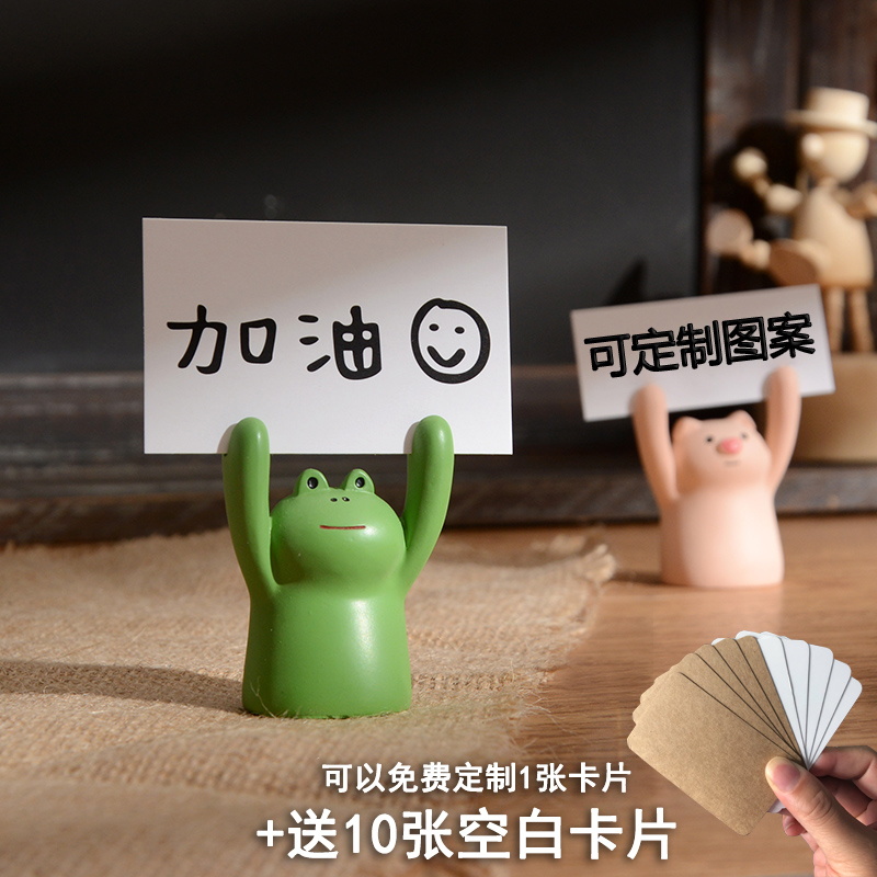 留言夹小动c物举手可爱桌面励志装饰摆件定制价格牌名片照片便签