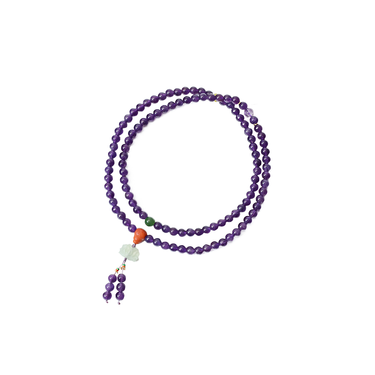 KAKA 客订高品紫水晶108颗和田玉莲花吊坠新中式多圈手串单圈项链