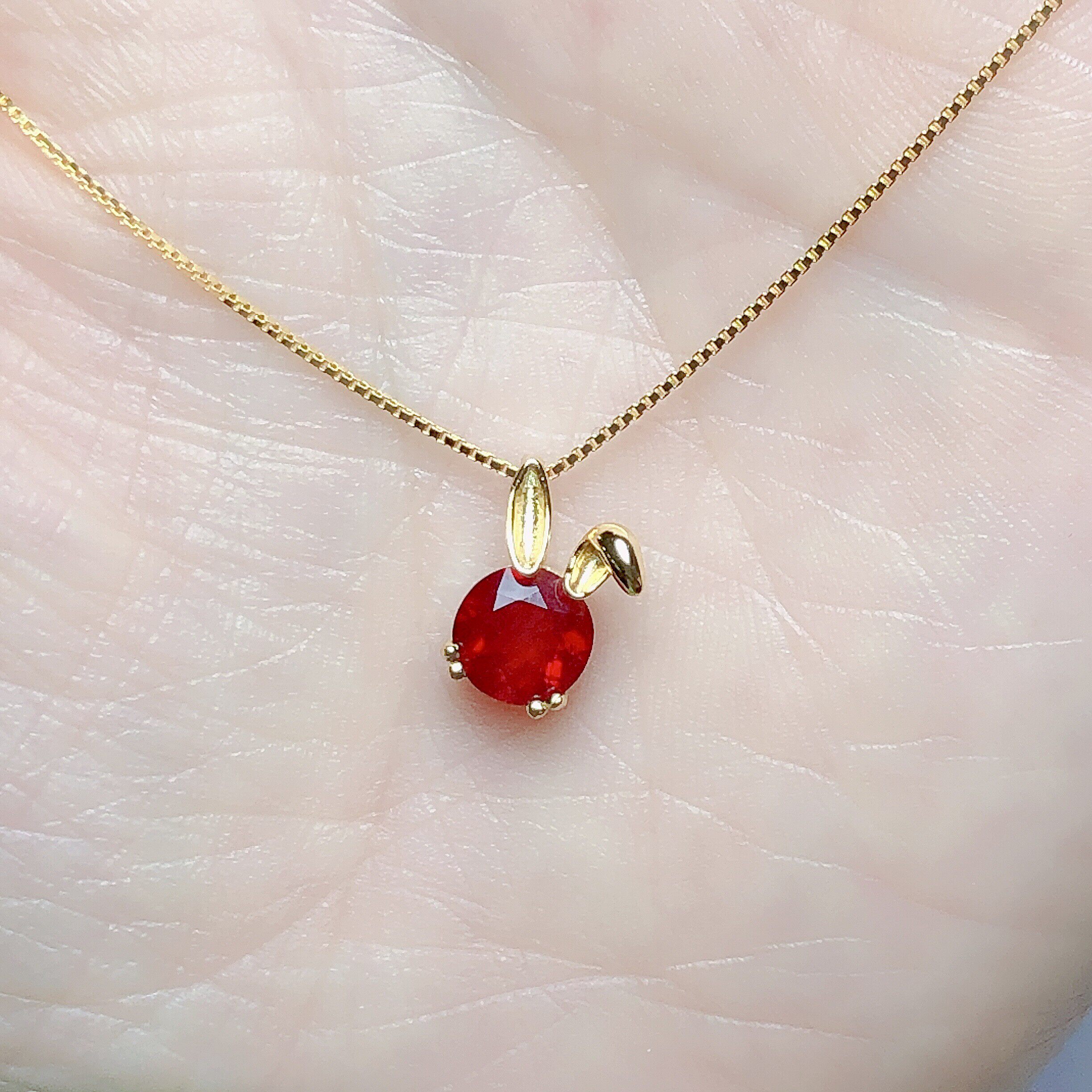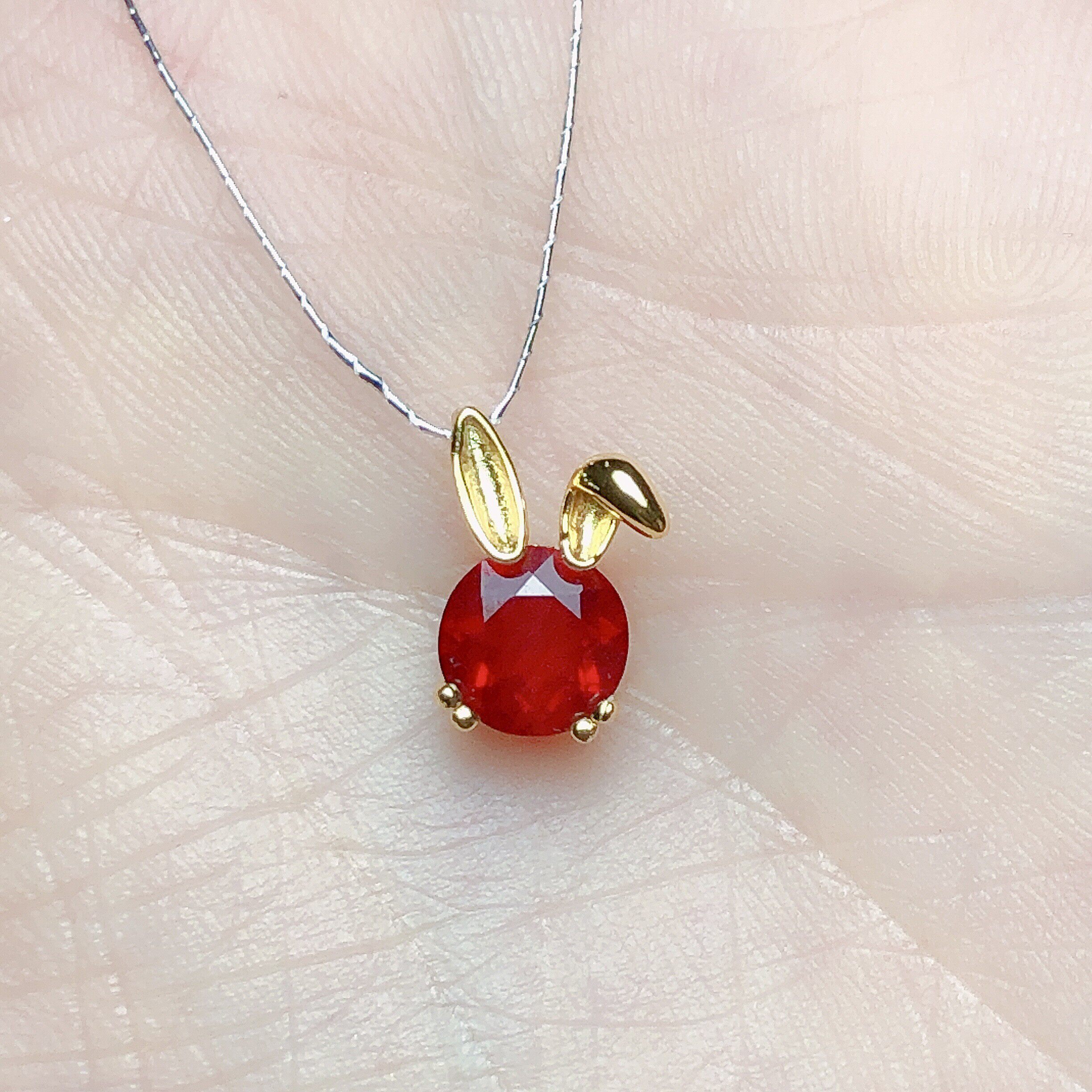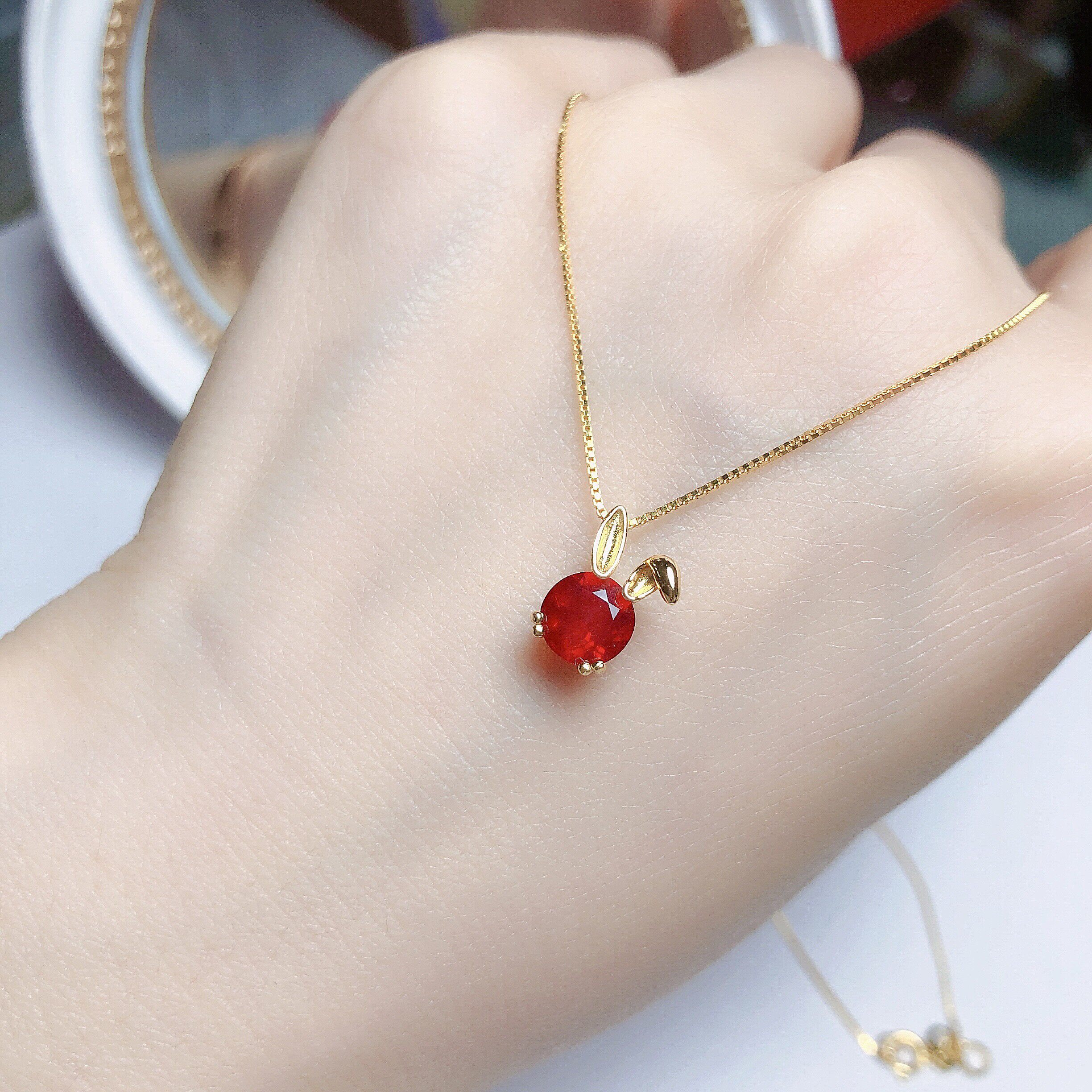 腾利925银圆形6x6太阳石红色宝石纯银镶嵌大气时尚简约洋气吊坠