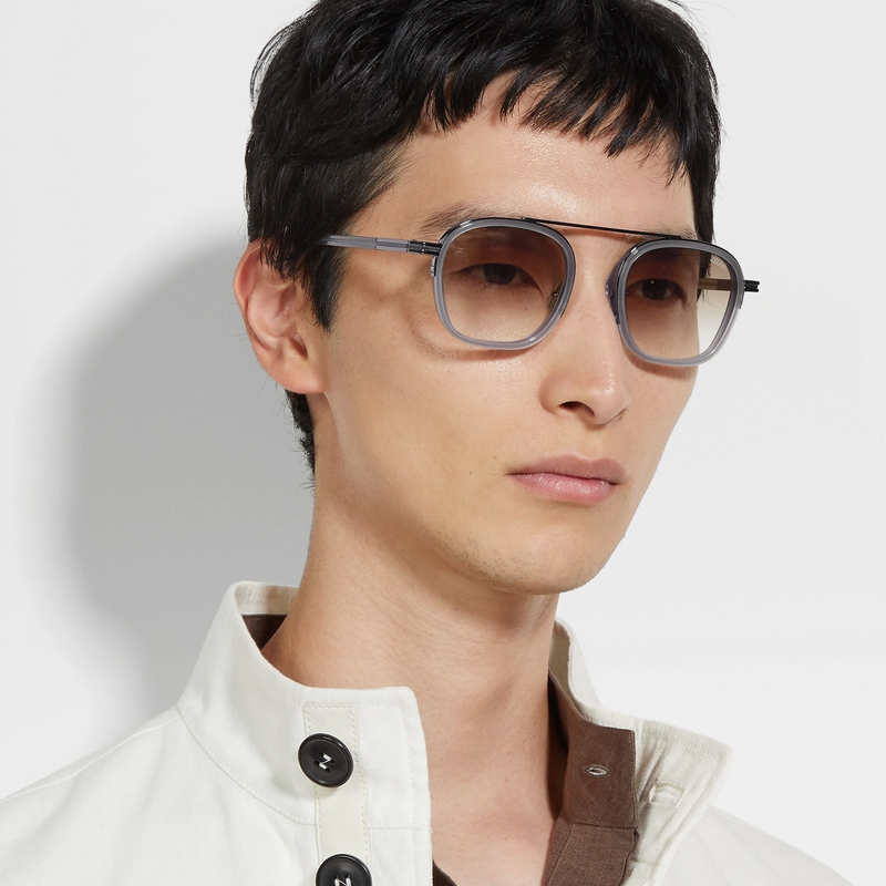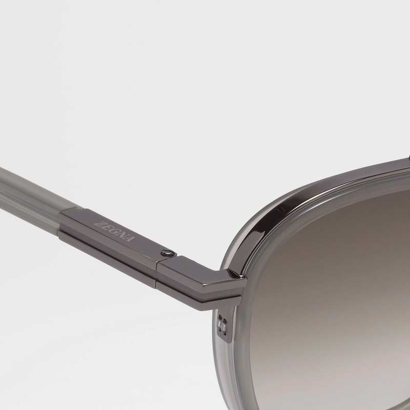 【礼物】ZEGNA杰尼亚配饰灰色醋酸纤维和金属太阳镜/墨镜