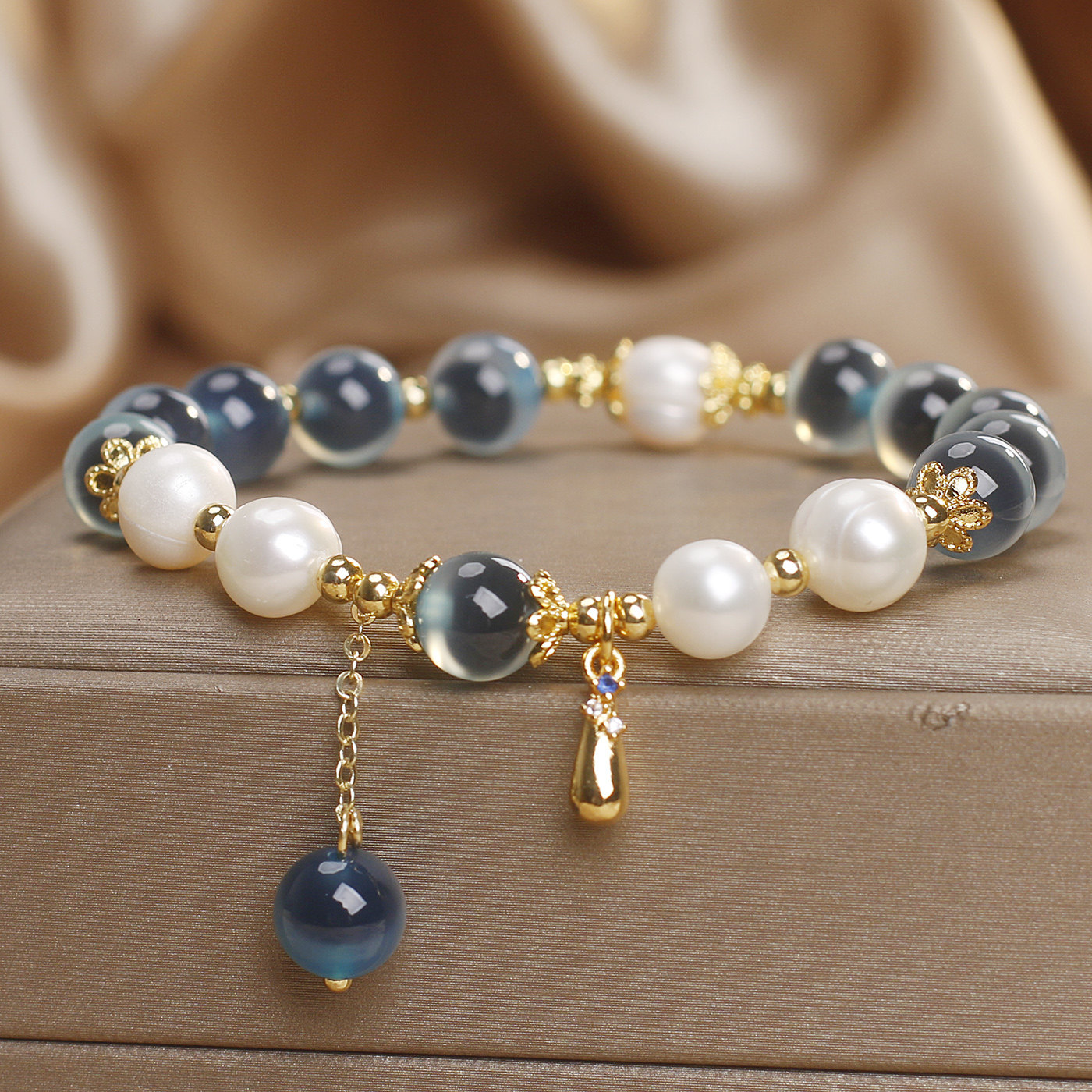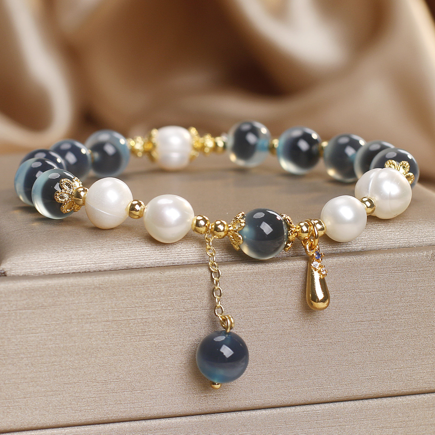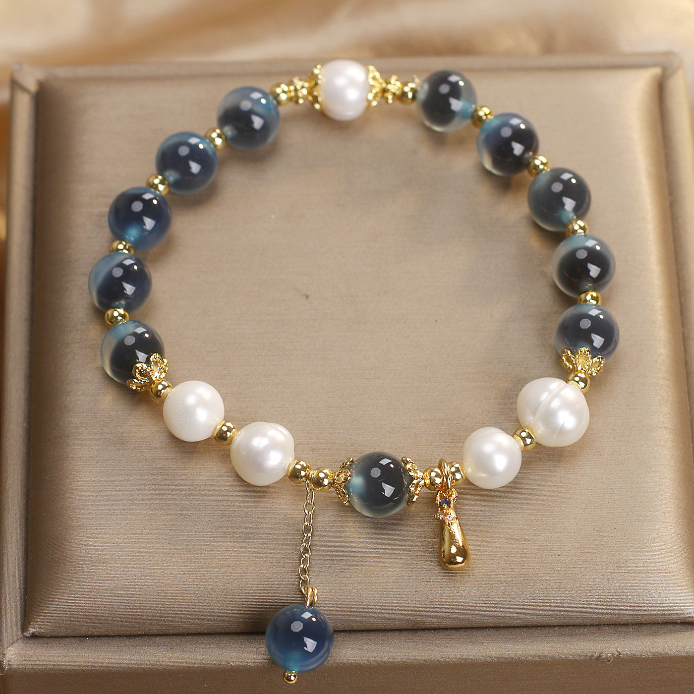 天然蓝色糖心玛瑙手串女款精致显白高级感气质珍珠手串送闺蜜礼物