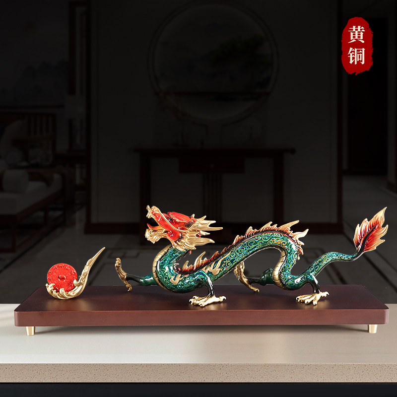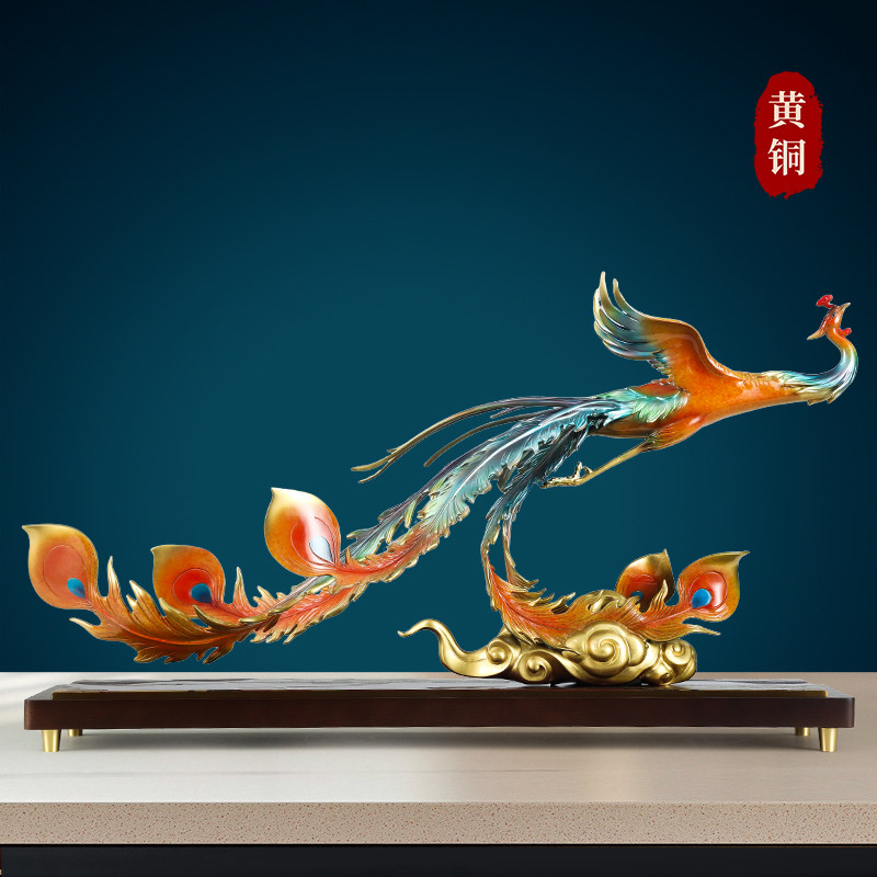黄铜青龙凤凰摆件高档客厅老板办公室高端大气装饰开业搬新家礼物