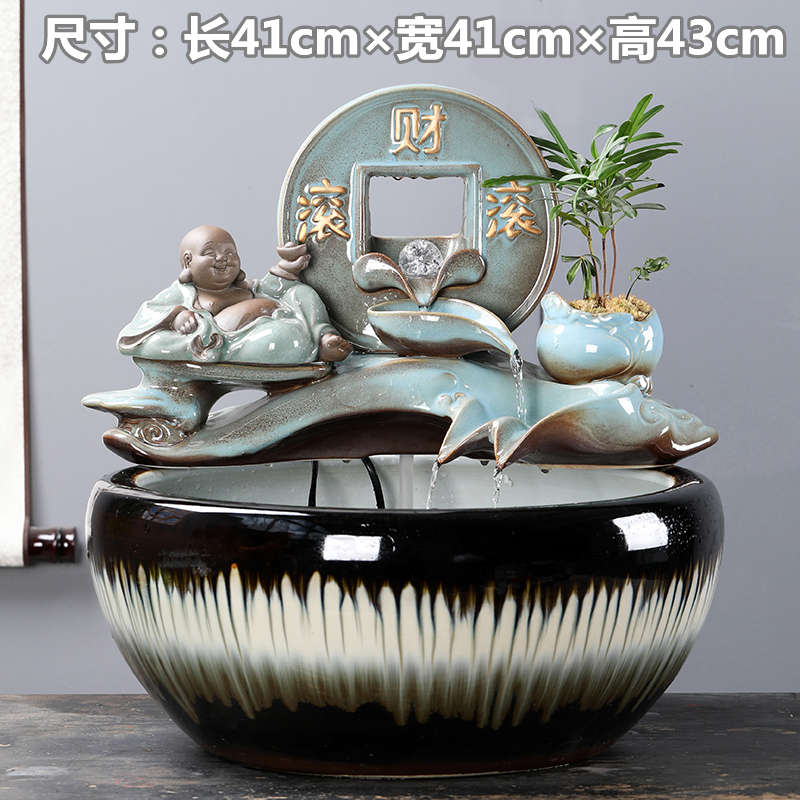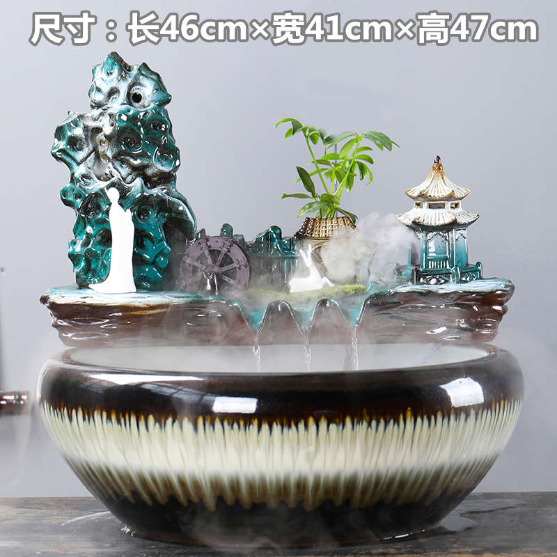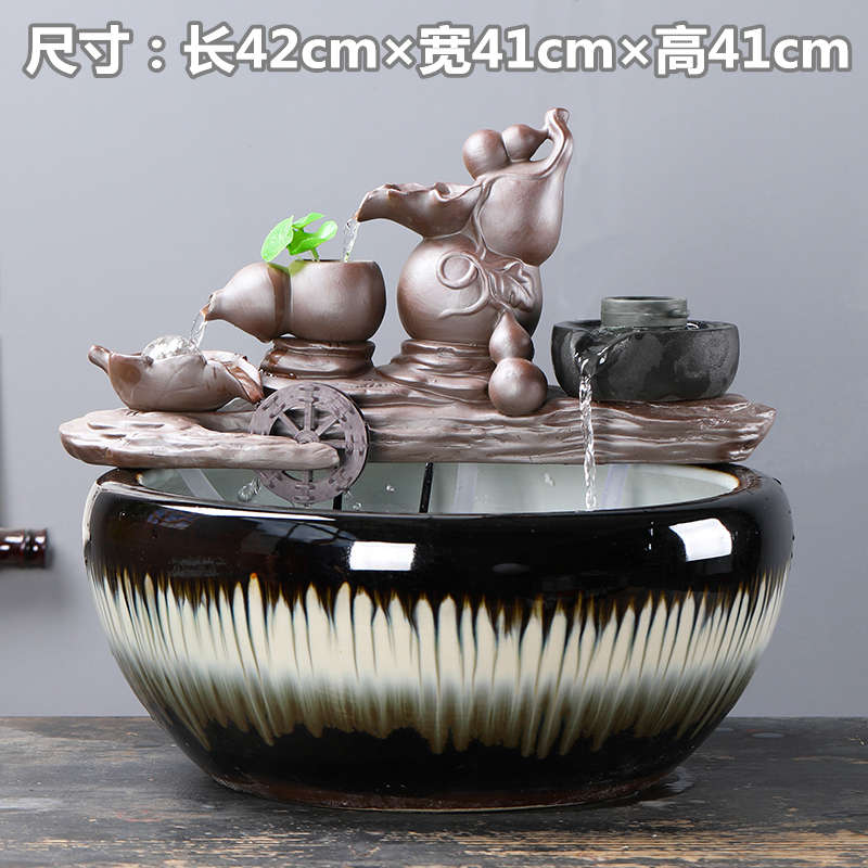 陶瓷大号水景客厅装饰办公桌面招财流水摆件养鱼缸开业乔迁送礼品