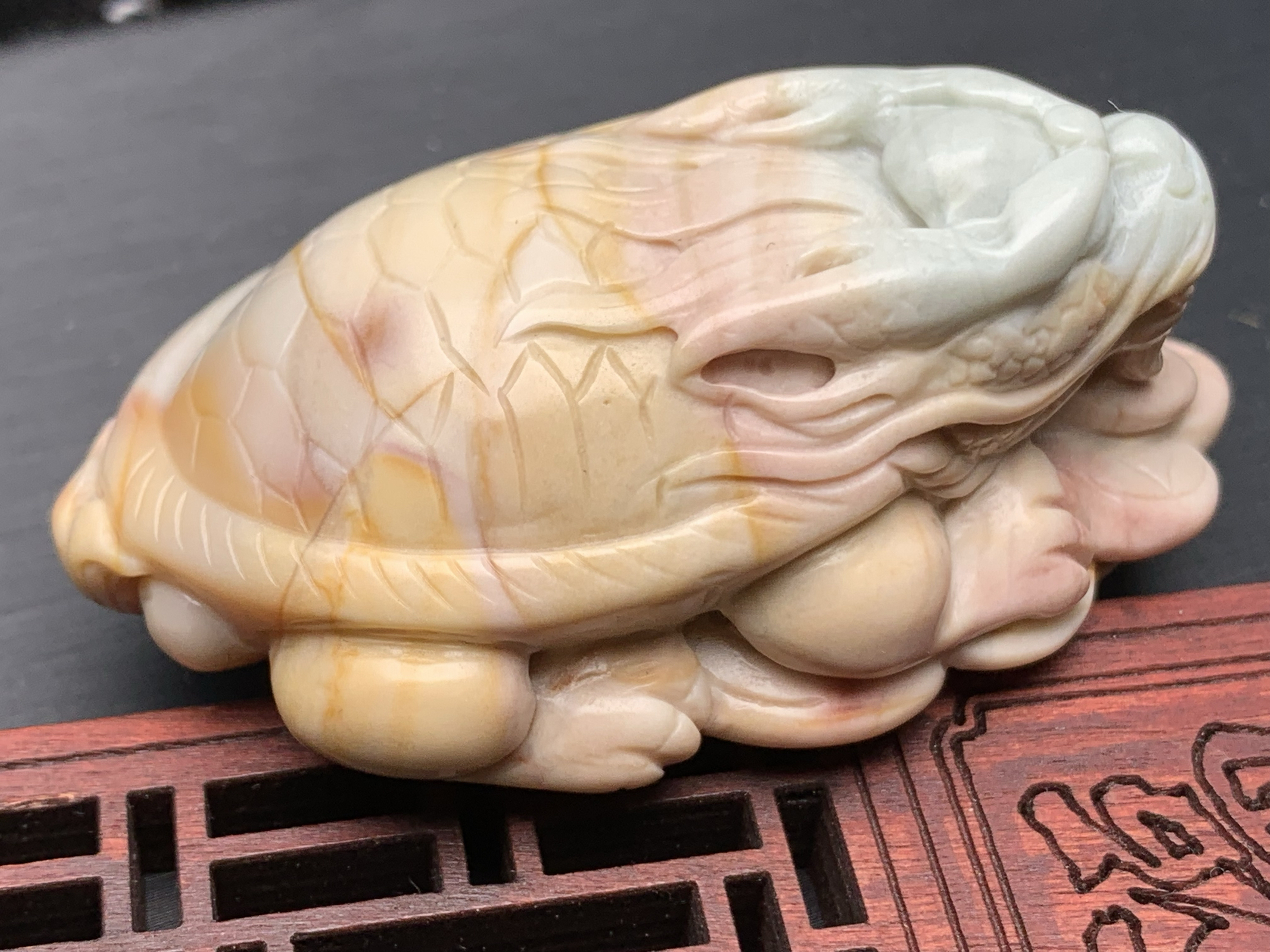 包真正品天然阿拉善彩玉三彩玉化料大龙龟吊坠/手把件两用款