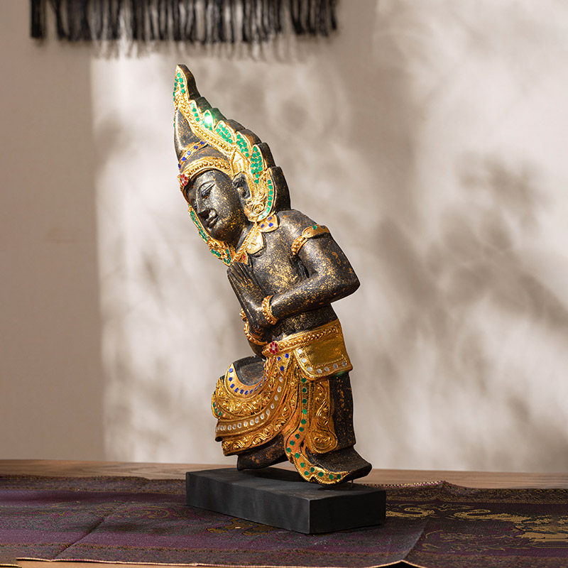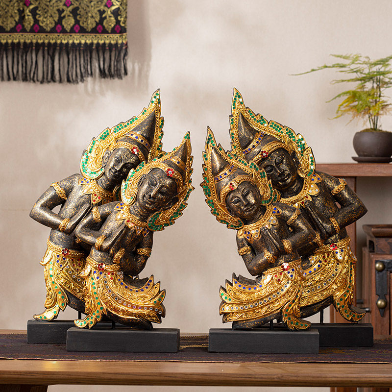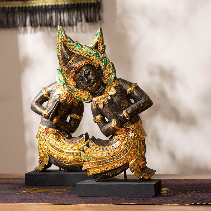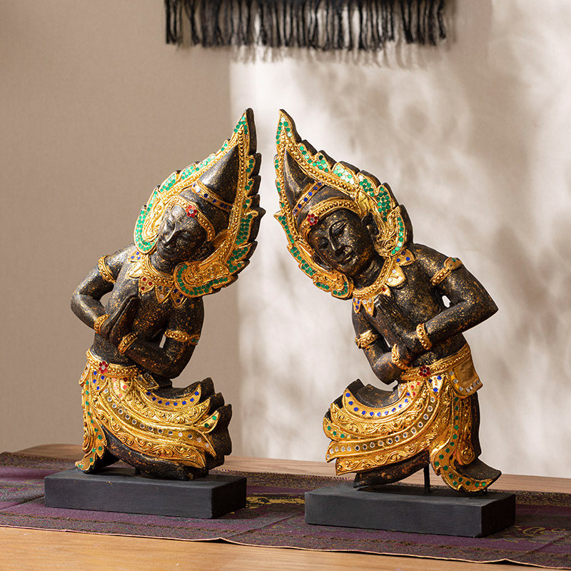 泰国木雕工艺品迎宾侍女佛像桌面前台禅意摆件吧台迎宾人偶佛摆设