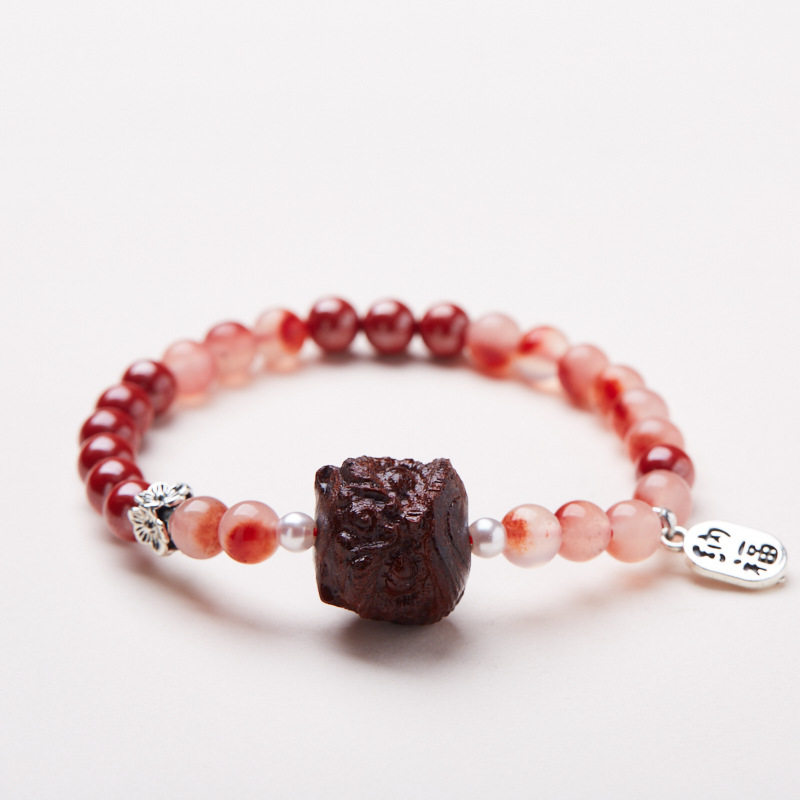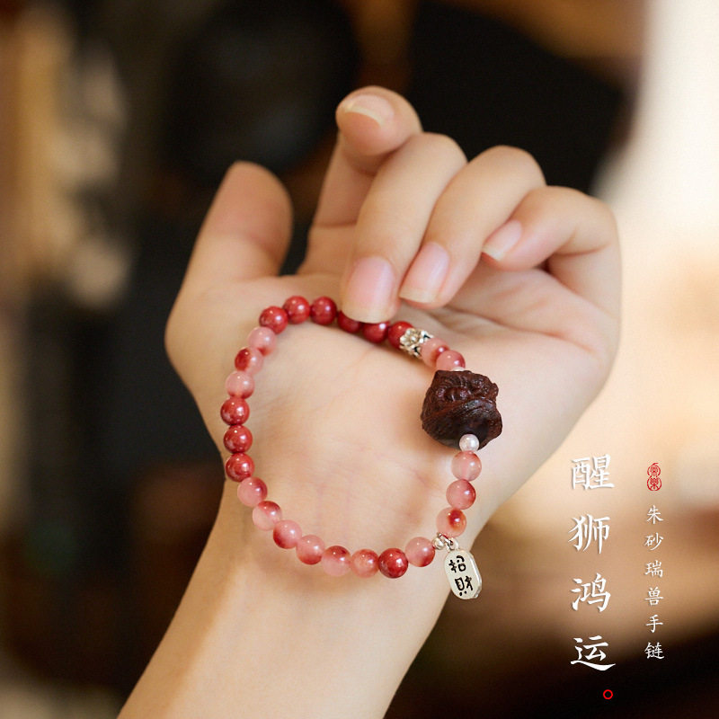 福利款帝王砂双色玉髓红色手链醒狮纳福手串本命年转运饰品