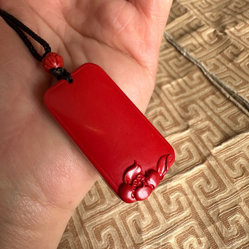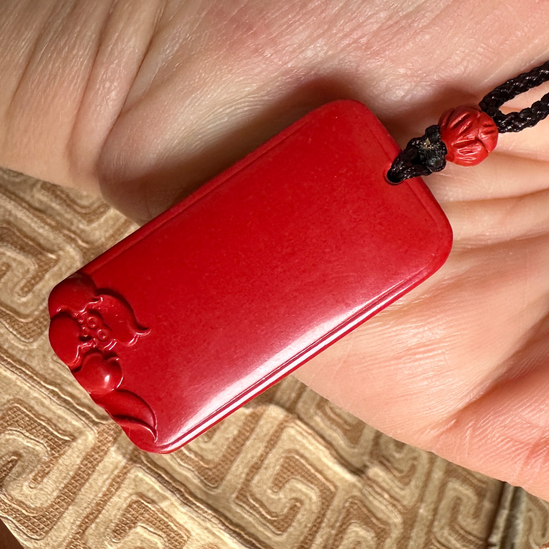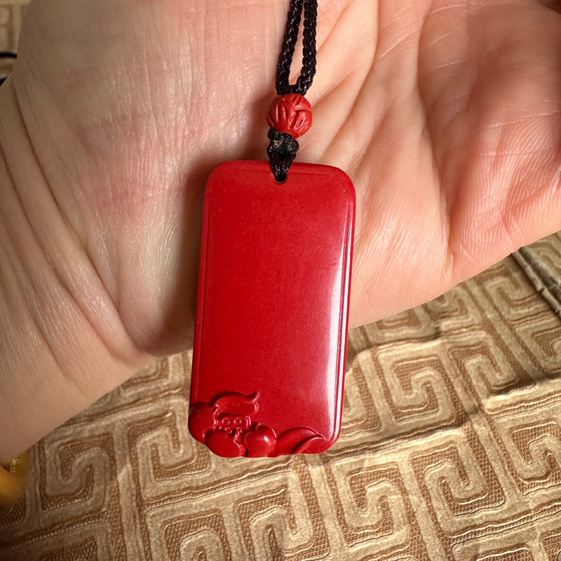 无事牌吊坠男女本命年项链红朱砂钥匙扣可刻字玉石挂件送证书