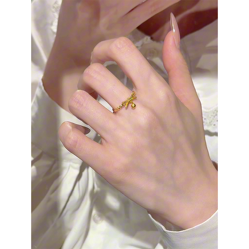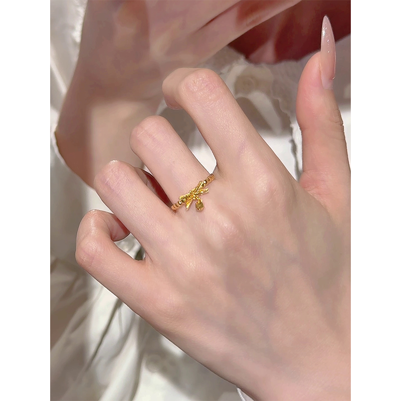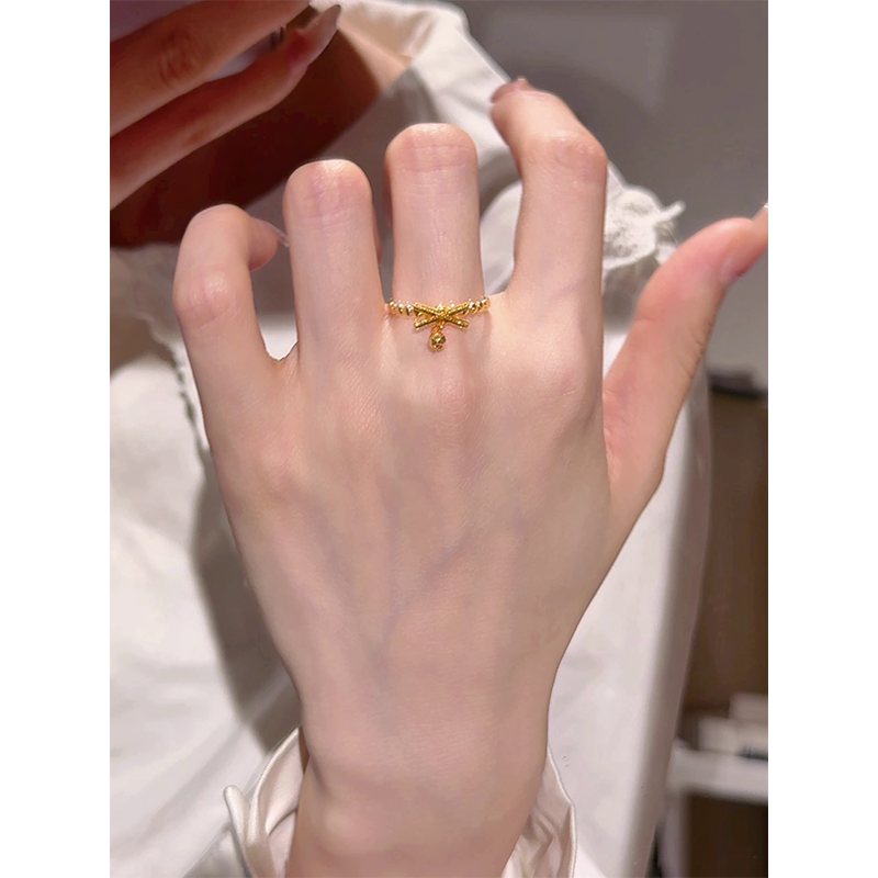 爆闪金色蝴蝶结仿蹦迪珠流苏戒指女轻奢高级感小众设计小提溜指环