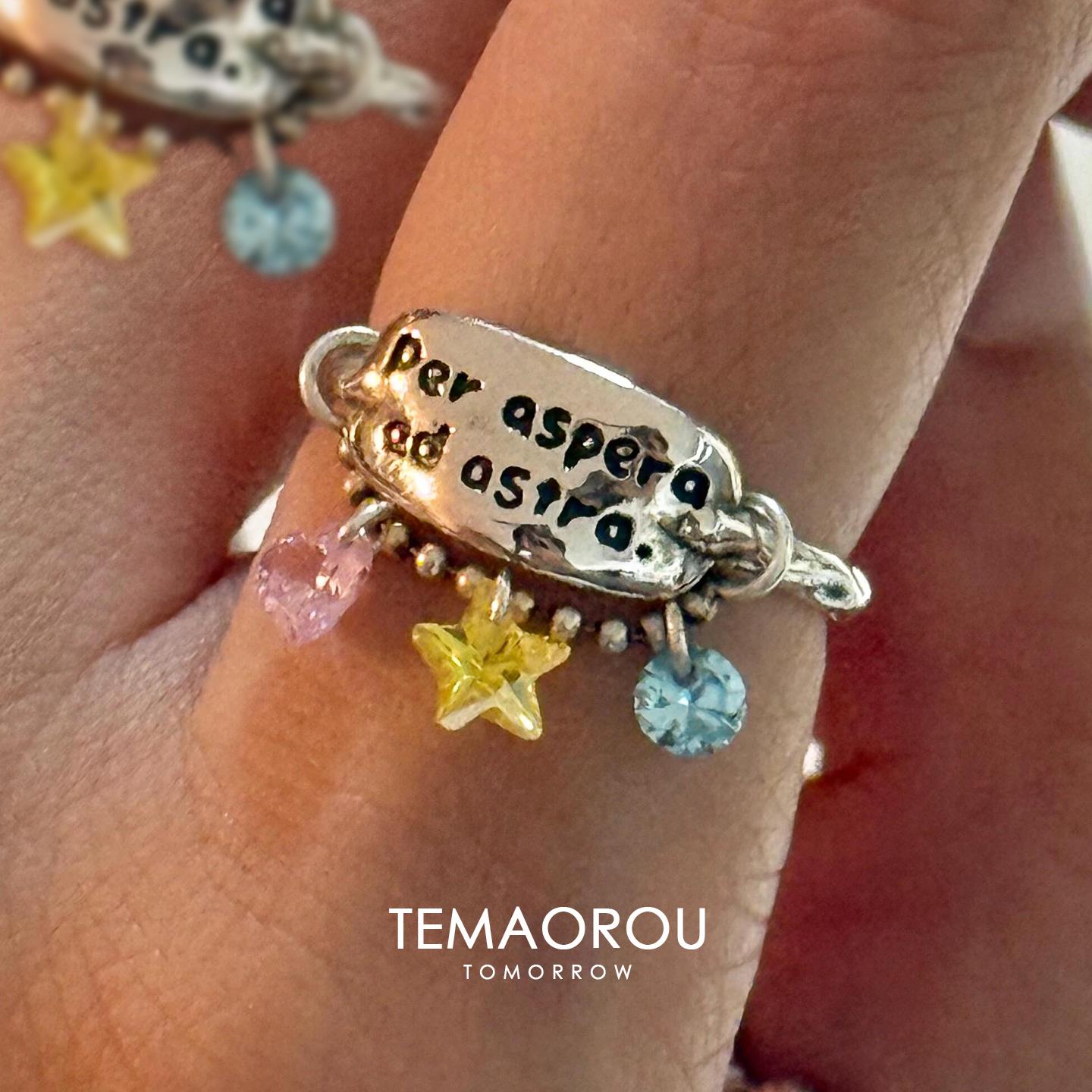 S925纯银趣味刻字戒指女百搭小众设计感食指戒甜酷风星星吊坠指环