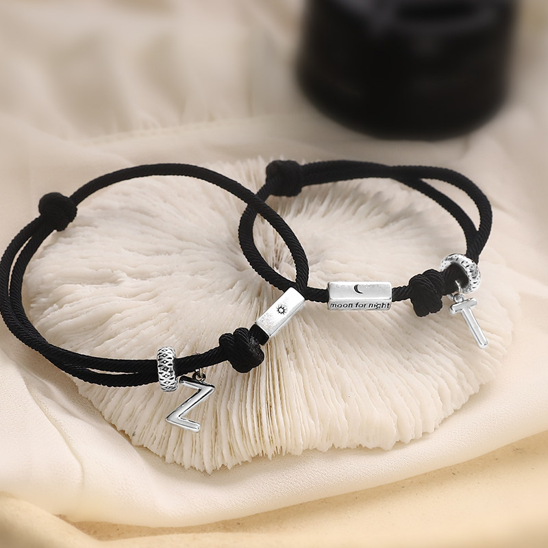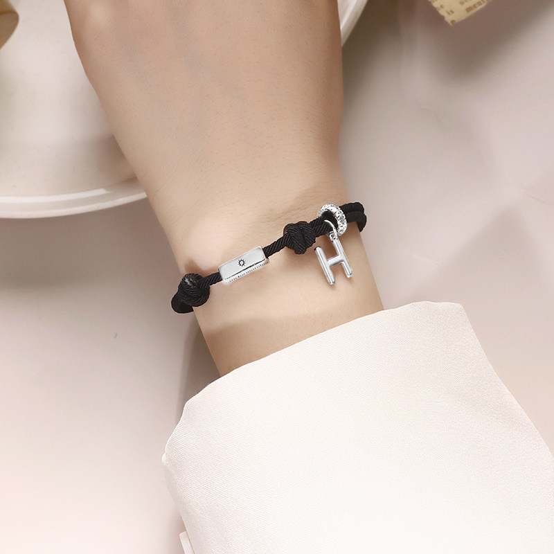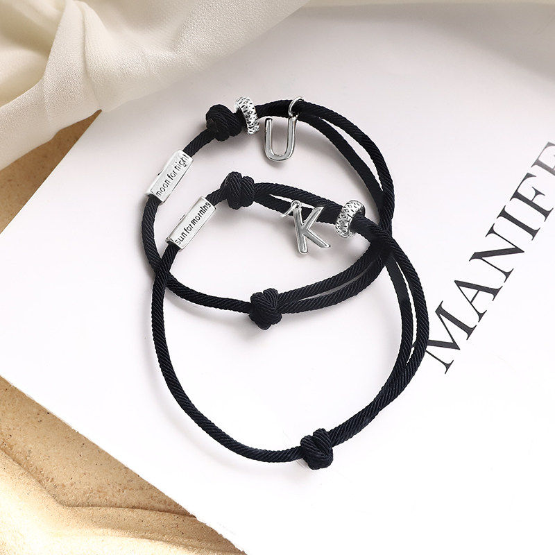 情侣手链一对情侣款定制26字母七夕情人节礼物男女手绳编织绳手饰