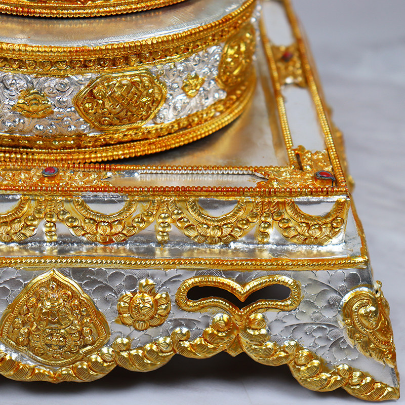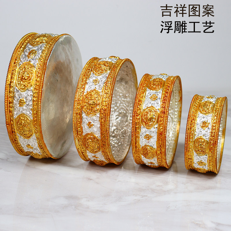 尼泊尔手工四方托盘鎏金银曼扎盘供修曼茶罗纯铜曼达盘多种型号