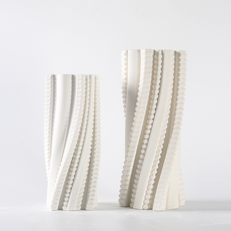 现代简约几何水波纹白色旋转陶瓷花瓶摆件样板间客厅玄关餐厅装饰
