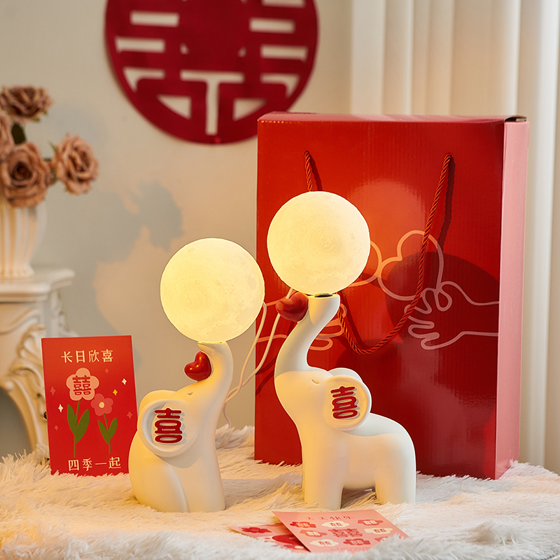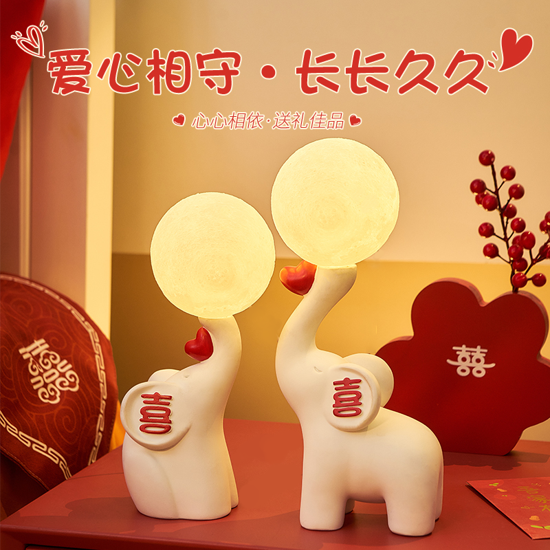 大象结婚长明灯一对结婚礼物送新娘闺蜜陪嫁新婚房床头柜台灯摆件