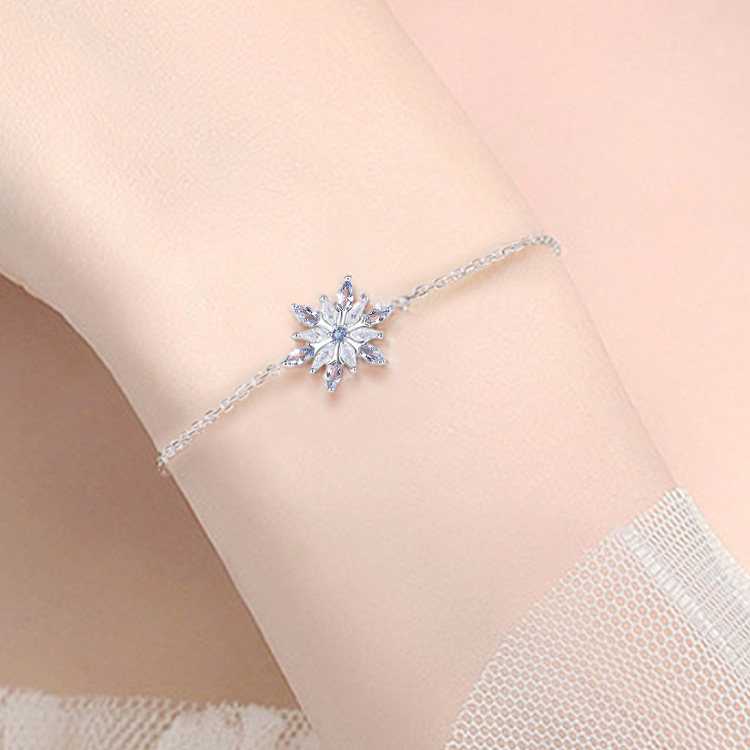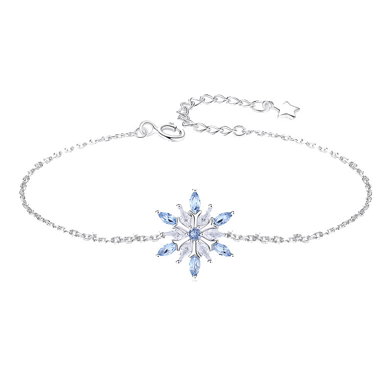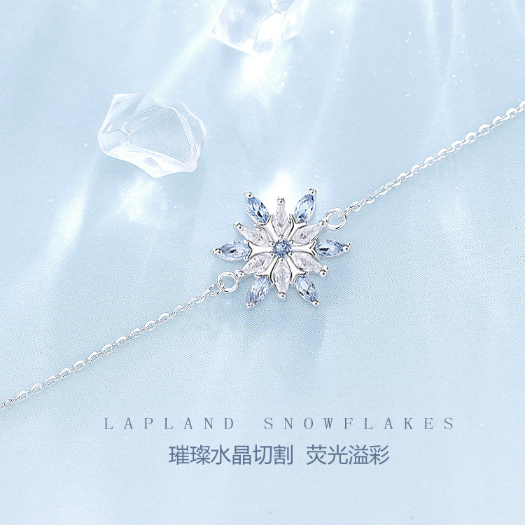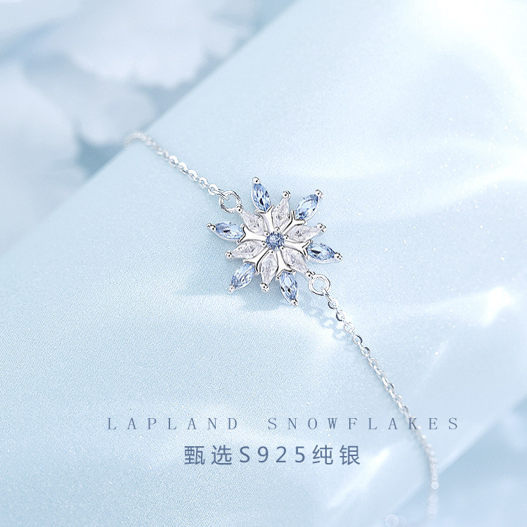 蓝色水晶雪花纯银手链女2024年新款高颜值学生党生日礼物送女友