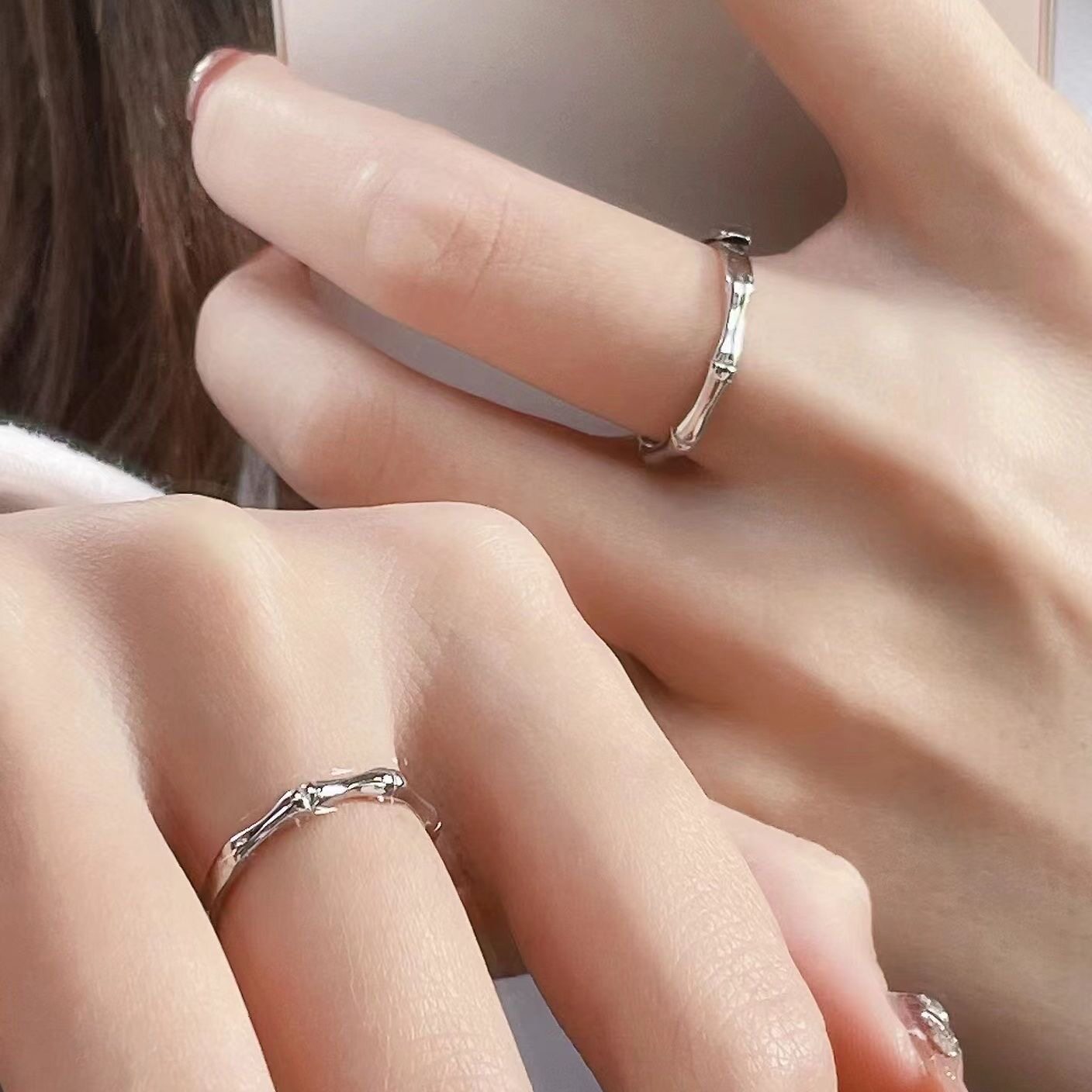 竹子戒指竹节戒简约小众纪念情侣对戒男女一对竹节戒男女戒子潮