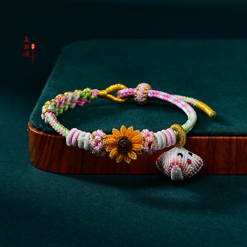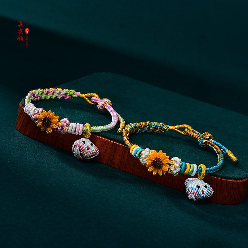 新款端午节五彩绳向日葵粽子蓝色粉色桃花结手链男女学生高考上岸