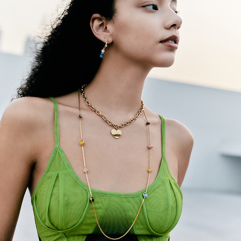 peat桃桃同款HEYU ISLAND黑鱼岛甜蜜糖果彩珠猫眼石叠戴长项链