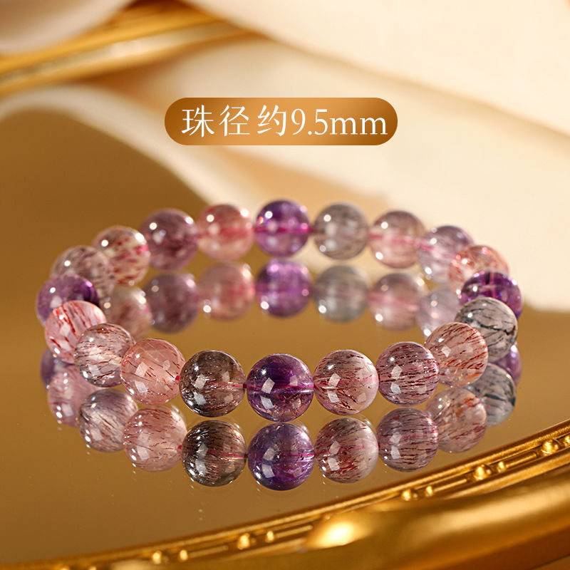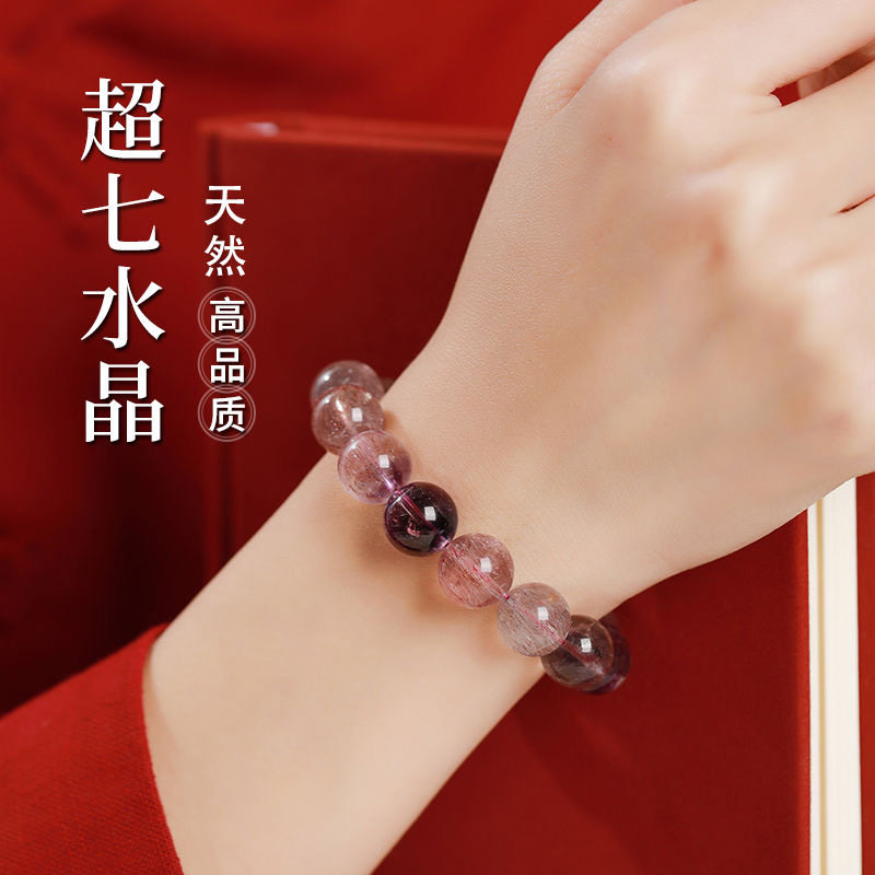 VZZS超七金草莓水晶手链女金太阳三轮骨干晶云母片紫发晶时尚礼品