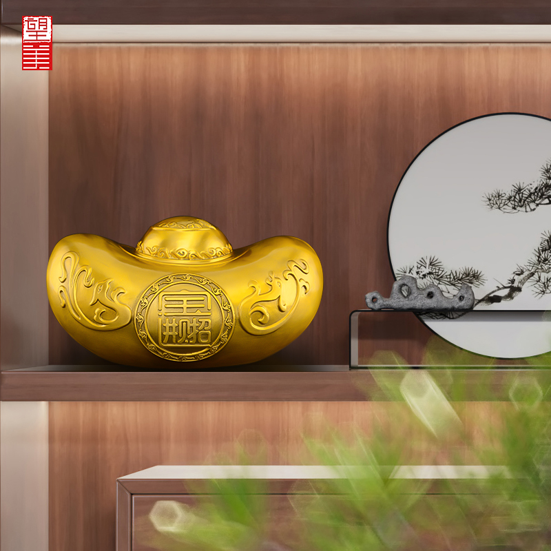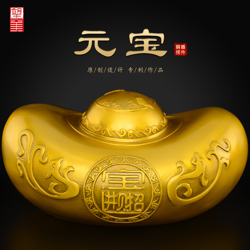 黄铜元宝摆件客厅金元宝招家居酒柜店铺装饰工艺品财大号铜元宝