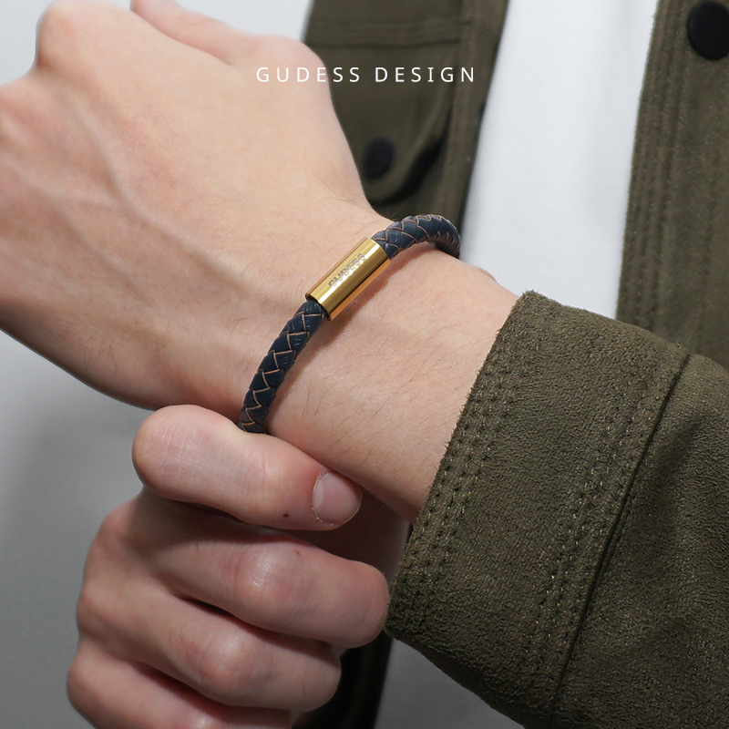 GUDESS时尚编织手链男士真皮磁吸手环镀金扣头高级皮手绳送礼礼品