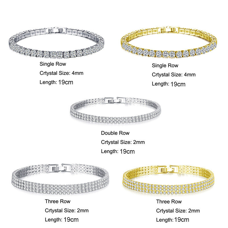 Tennis Bracelets for Women Simple Luxury Round Crystal Gold