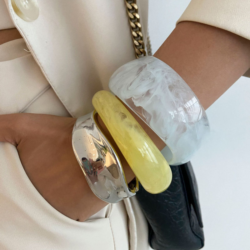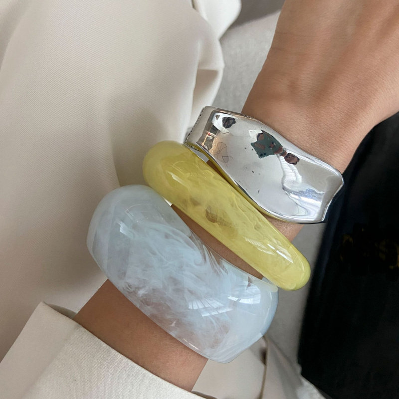 欧美跨境夸张不规则半透明亚克力手镯 时尚ins几何晕染树脂手环女