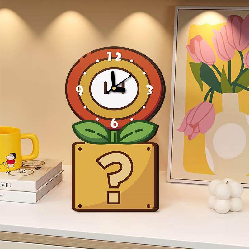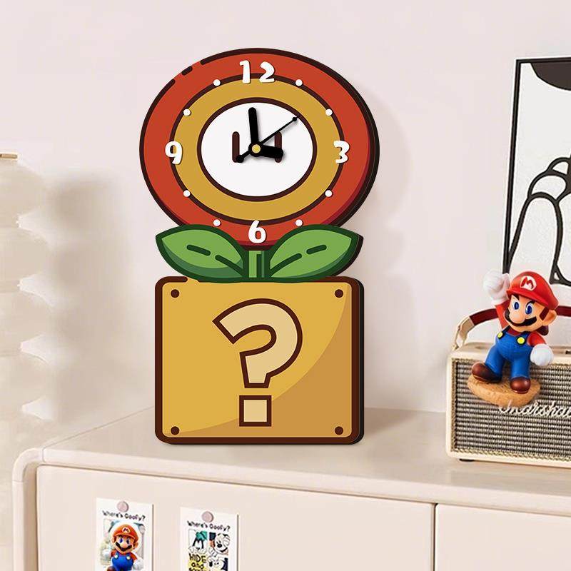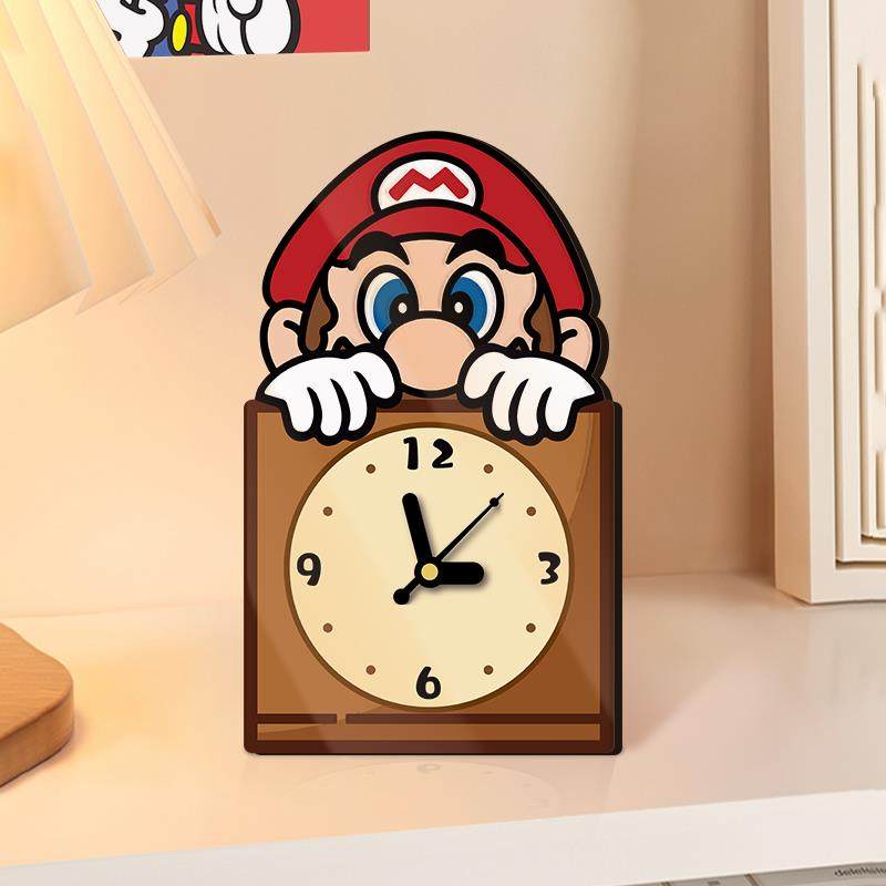 玛利欧桌面时钟摆件客厅电视柜可爱摆台式钟表2025年新款装饰品
