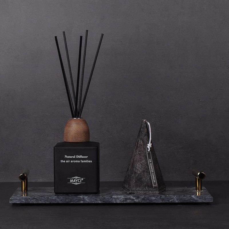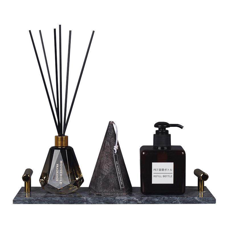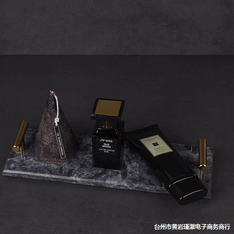 样板房间卫生间质感灰色托盘摆件组合套装香薰蜡烛饰品洗漱台软装