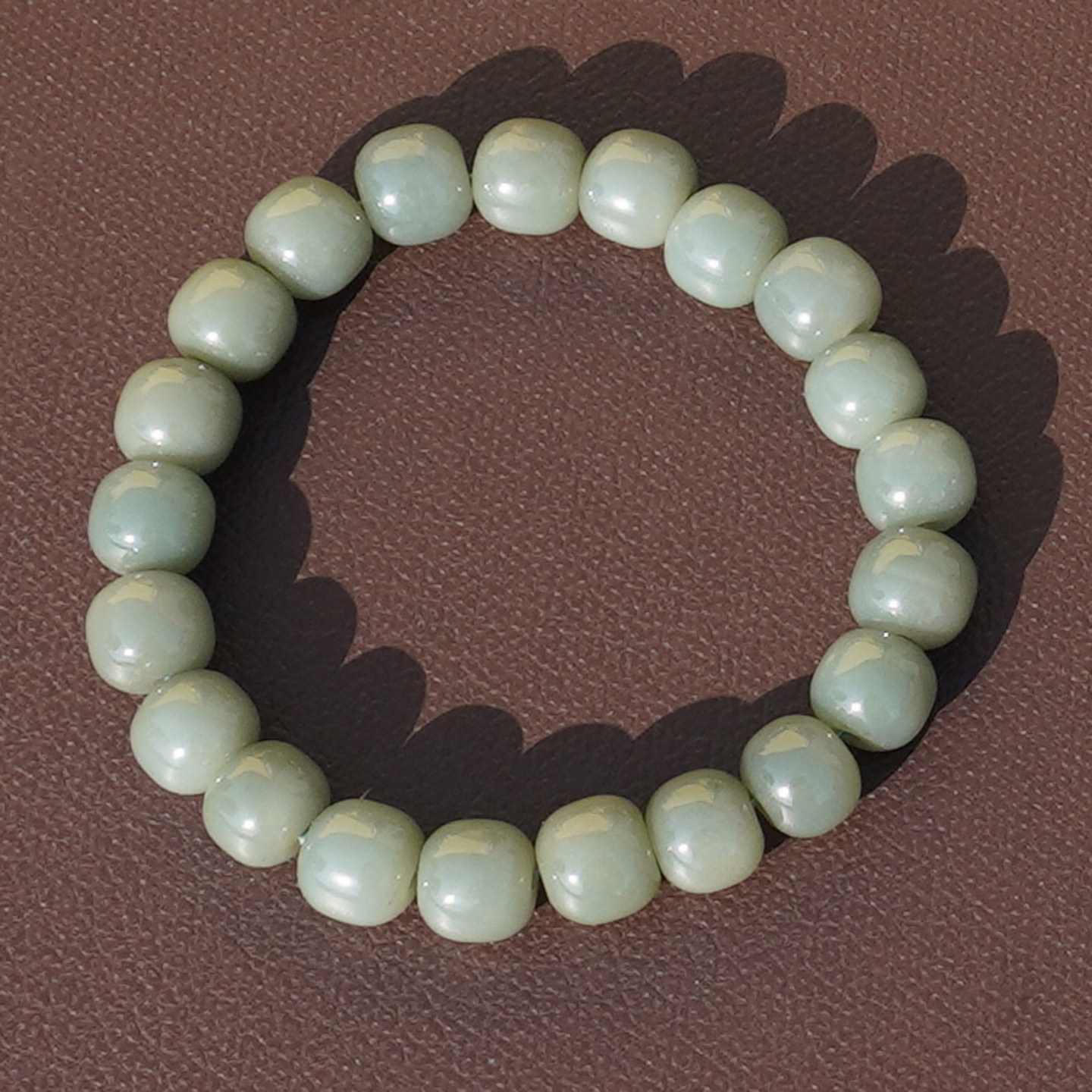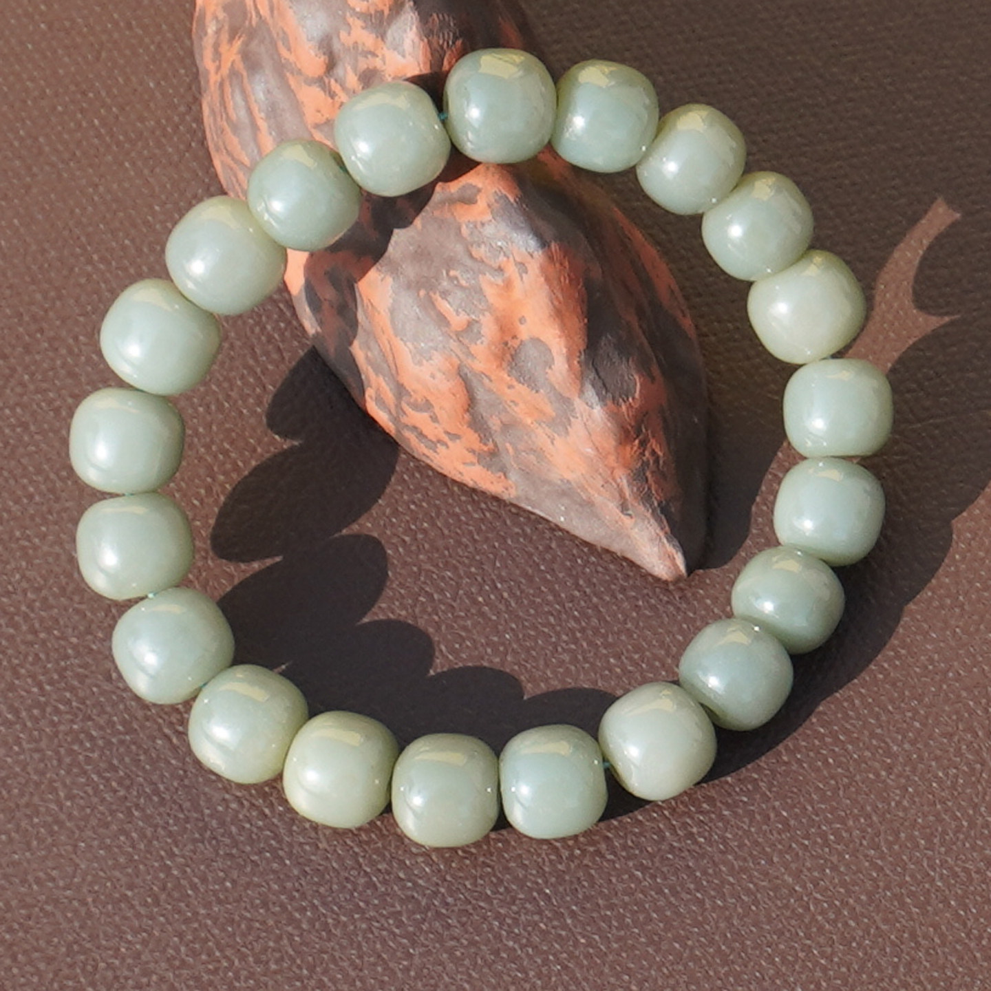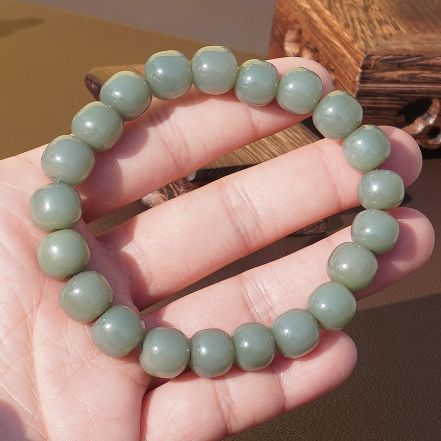 方言和田玉新疆且末老坑料粉青瓷白色10mm老型珠小众高级感手串A6