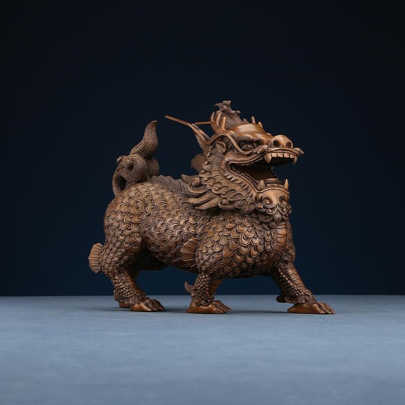 紫铜威武麒麟摆件 办公室家居桌面麒麟工艺品摆设开业礼品