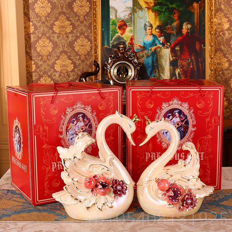 高档欧式陶瓷天鹅摆件柜一视对客厅玄关电柜酒Q创意家装饰品结婚