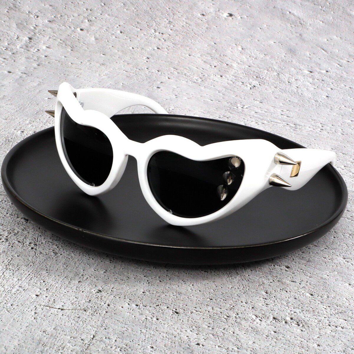 ins 风甜酷爱心铆钉墨镜 红色框钻饰渐变镜片 个性装饰镜个性风潮
