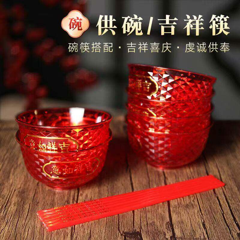 敬神茶杯小酒盅小酒杯上供红色供碗塑料碗小红碗拜拜茶酒杯套装