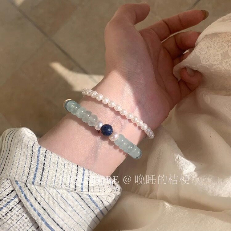晚睡的桔梗「大西洋的风」精致蓝色天然石珍珠手链高级冷淡风手串