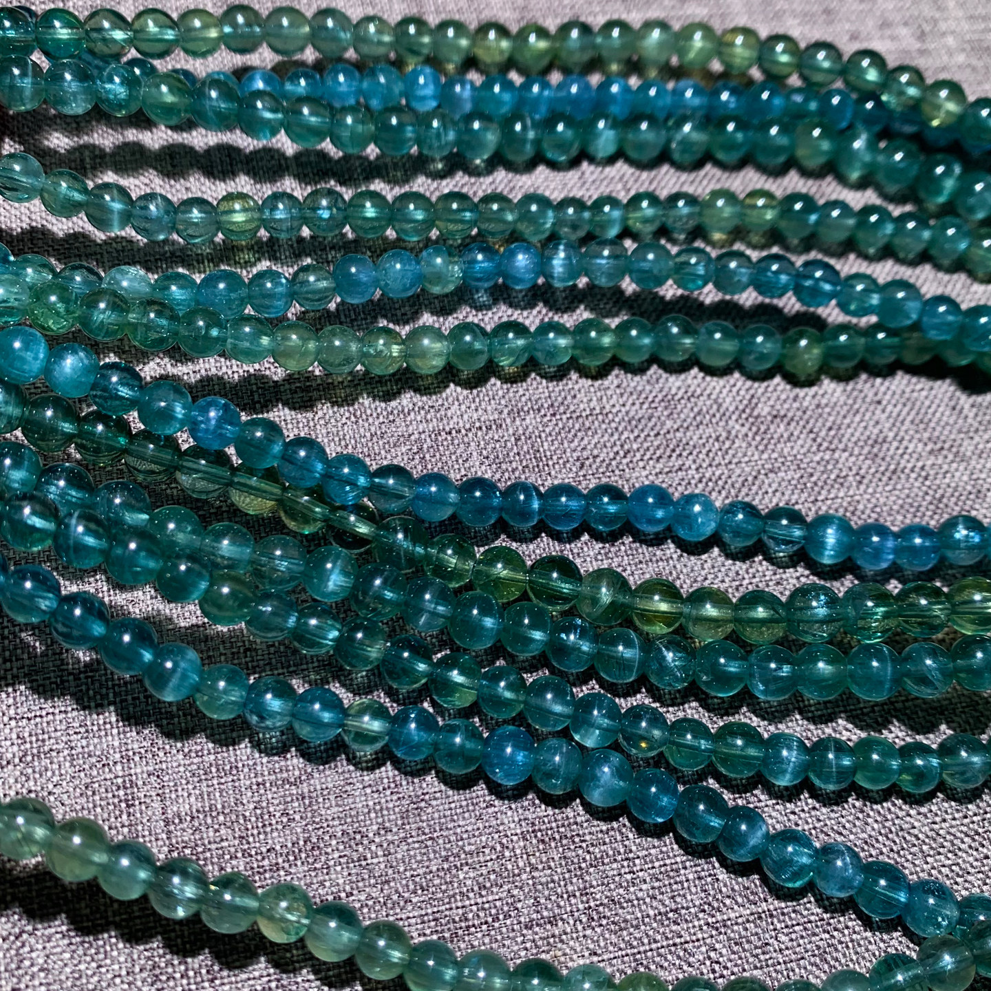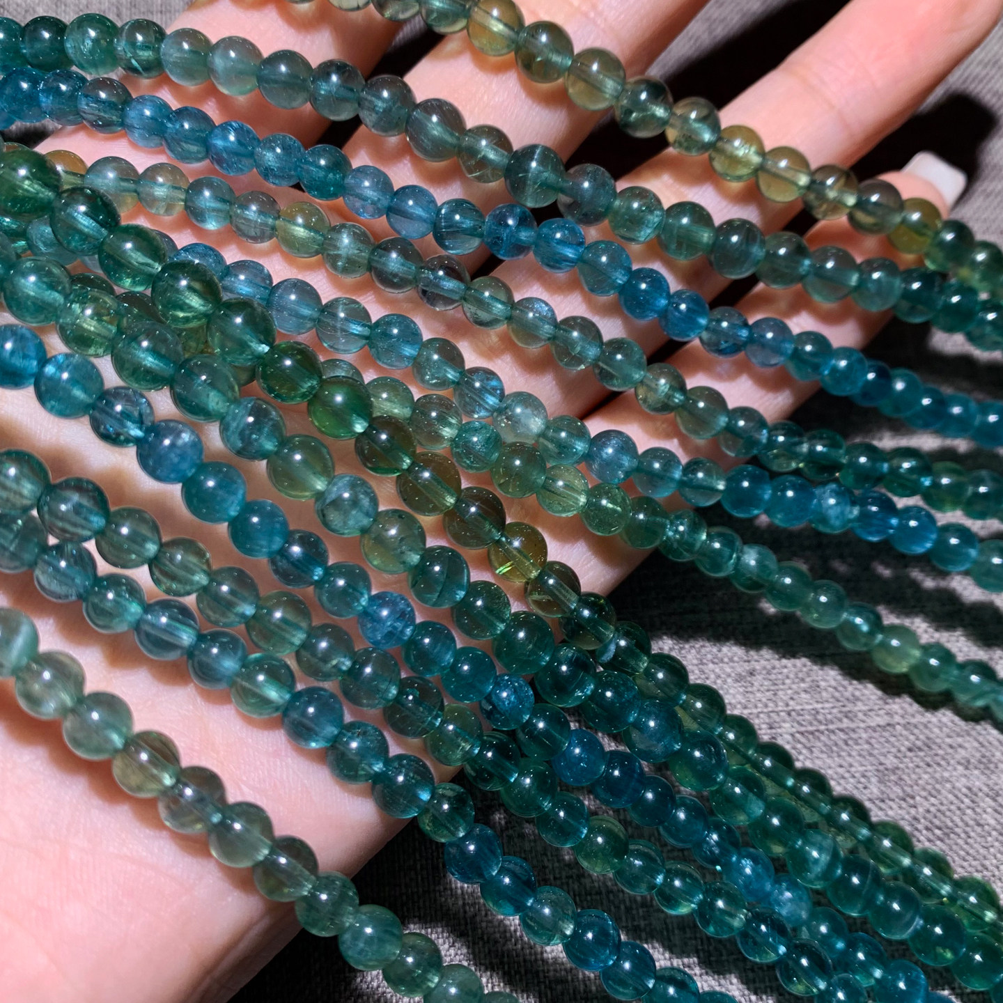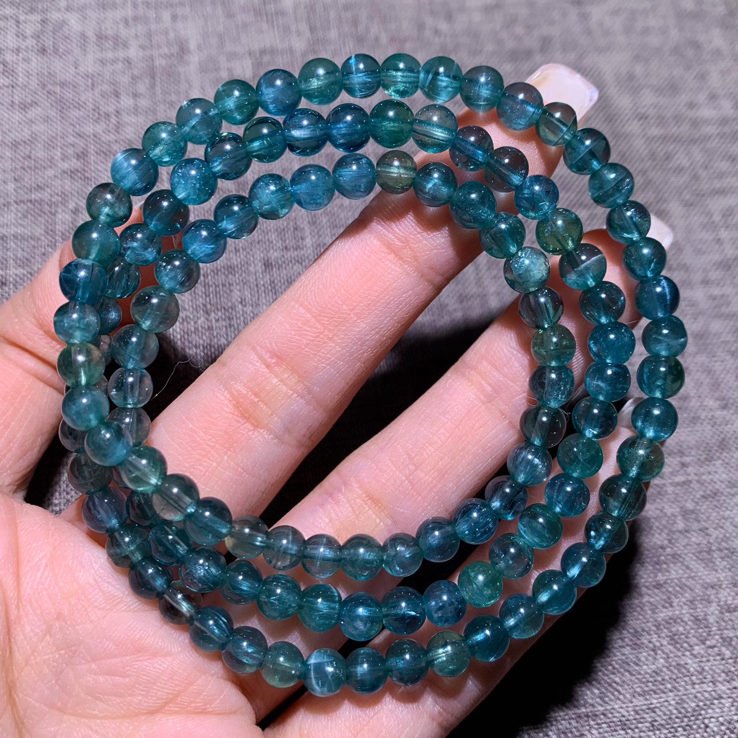 天然冰透磷灰石三圈手链拉丝水晶蓝绿色氟磷灰石手串饰品礼物男女